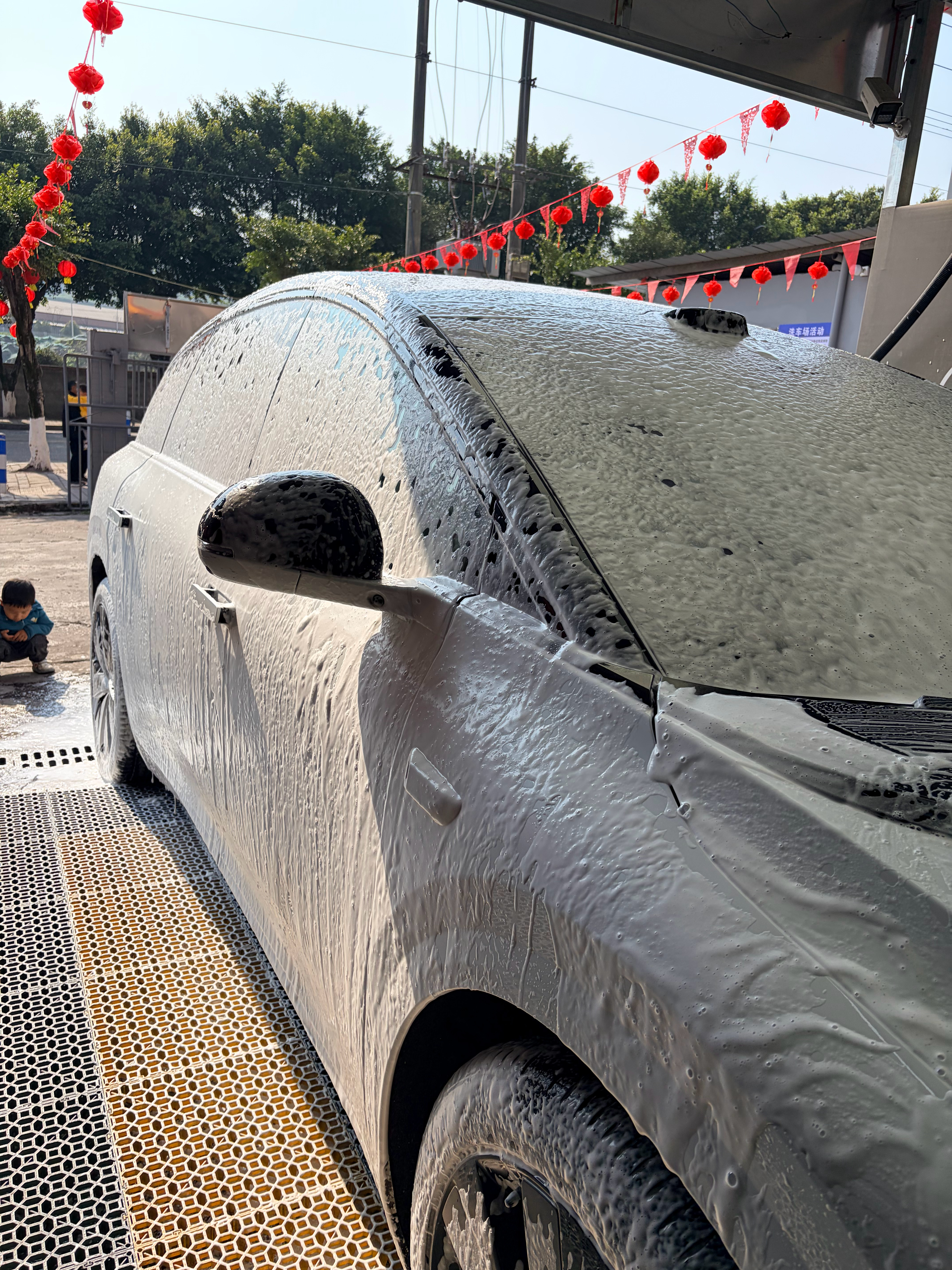 这是我见过泡沫最足的自助洗车店。