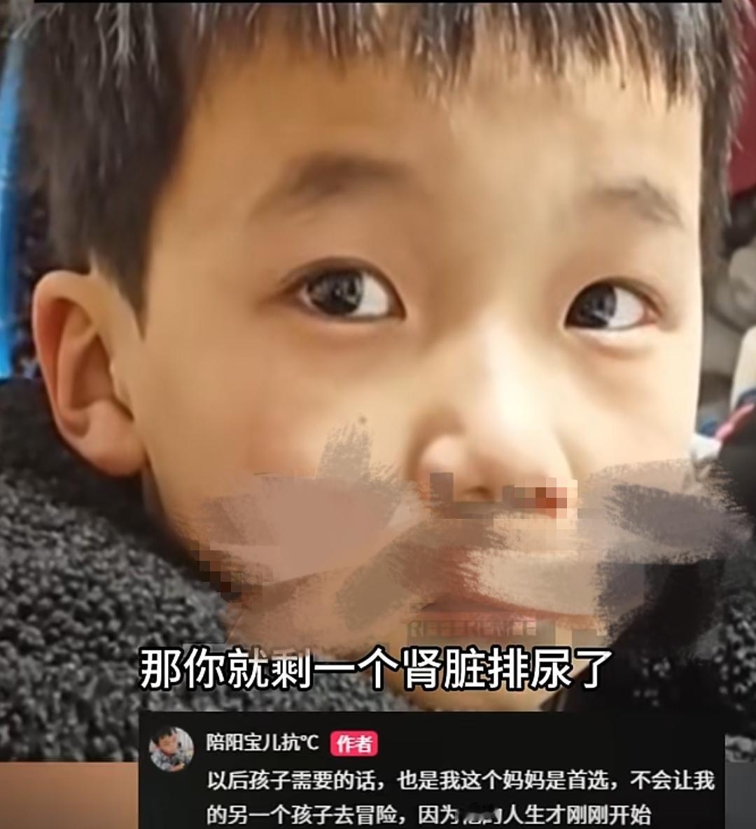 “我只想让俺哥哥活着陪我长大!”面对年幼的儿子毫不犹豫的回答,妈妈泣不成声!河南男孩患尿毒症,妈妈满含泪水问小儿子:“如果哥哥需要你捐赠一个肾脏的话,你愿意吗?” 妈妈说话时犹犹豫豫,磕磕巴巴。她知道这个问题问出来是对小儿子绝对的不公平,但大儿子也是自己的亲生骨肉,世界上最难的抉择,也不过如此吧! 小儿子清澈的眼神认真的看向妈妈,没有一丝往日的淘气,他眨巴两下眼睛毫不犹豫的说:“我愿意。” 听到小儿子坚定的回答,妈妈以为小儿子完全意识不到缺失一个肾脏的严重性,于是她告诉小儿子:“如果你捐一个肾脏给哥哥的话,你就只剩下一个肾脏排尿了。” 听着妈妈的话,小儿子眼珠一转,若有所思的样子。他或许理解不了只剩一个肾脏排尿是什么概念,但他能确定的是,自己的肾脏能救哥哥的命。 他说:“我只想让俺哥哥活着陪我长大。” 听到小儿子的回答,妈妈泣不出声,再也说不出一句话来。作为一个母亲,她陷入了深深地自责,两个都是自己的亲生骨肉,任何一个她都难以割舍。 有人说:“这样的话,两个孩子都不能健康的长大,甚至还有可能影响孩子成家立业,妈妈真的要这样选择吗?” 或许兄弟俩曾无数次因为一个玩具或者一口吃的而打得不可开交,可是他们住过同一间世界上最贵的房子,血浓于水的亲情让弟弟毫不犹豫的做出了那个能让哥哥活下来的选择。 可是有人说,这样对弟弟不公平。弟弟看起来也就是五六岁的模样,根本不能理性的思考这个问题,他的回答太过于感性,太多对哥哥的感情掺杂其中。在这个理性与感性无法完全平衡的情况下让孩子做决定,本就是对弟弟的不负责任,他只知道自己想要哥哥陪着自己! “为什么非要让弟弟去介入哥哥的命运呢?”有网友灵魂拷问,让我心里为之一震。我也觉得这样做对弟弟不公平,我们也应该去尊重他人的命运。但是这个抉择让一个母亲来做,母亲或许只能说:“如果能用我的命来换,我愿意。” 太扎心了!或许这位母亲的艰难与无助我无法完全感同身受,只希望哥哥能够早日等来合适的肾源,只希望这满是阴霾的篇章能够早日结束,迎来属于他们的阳光!尿毒症 河南 母爱是自私的还是无私的?
