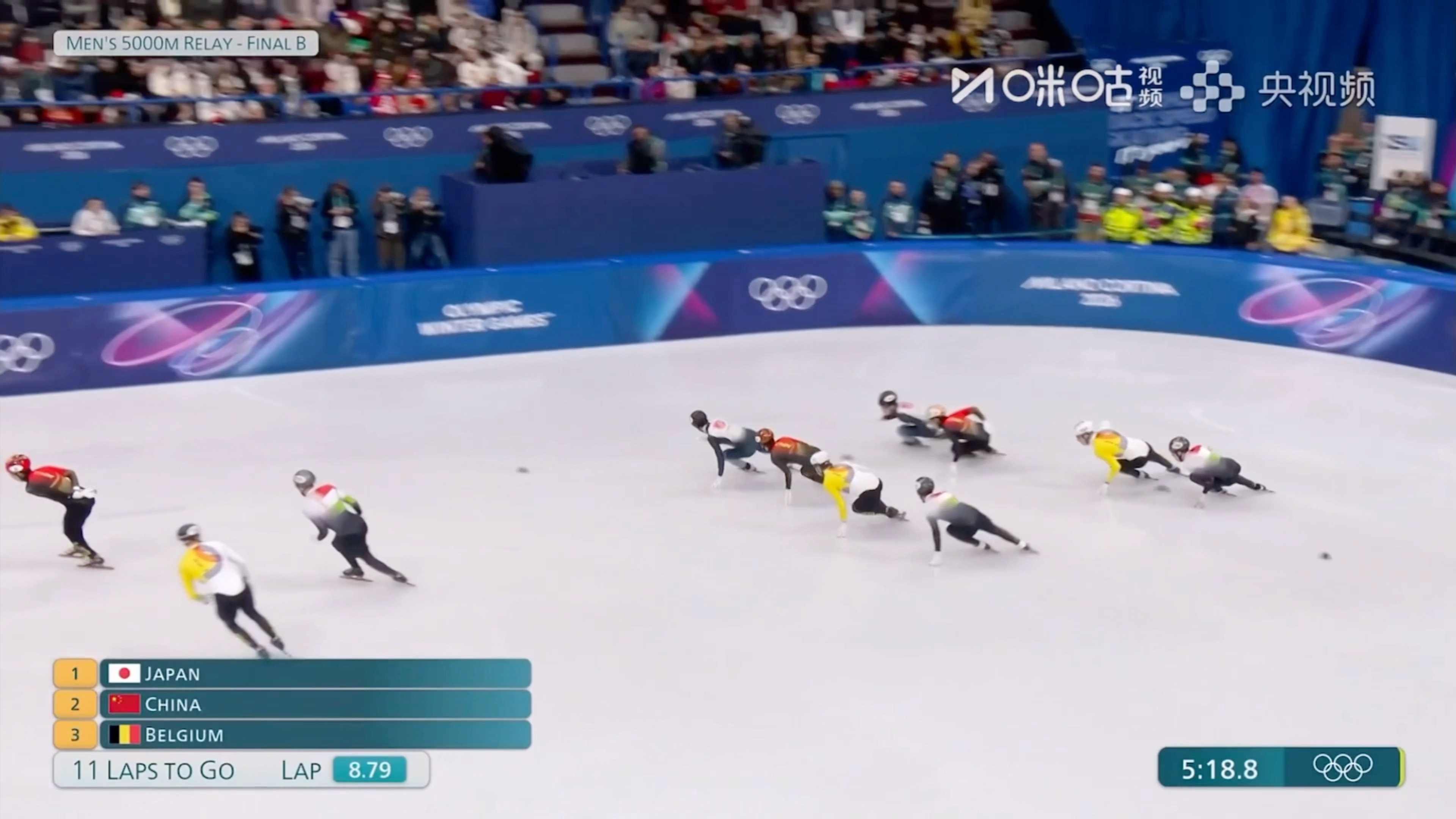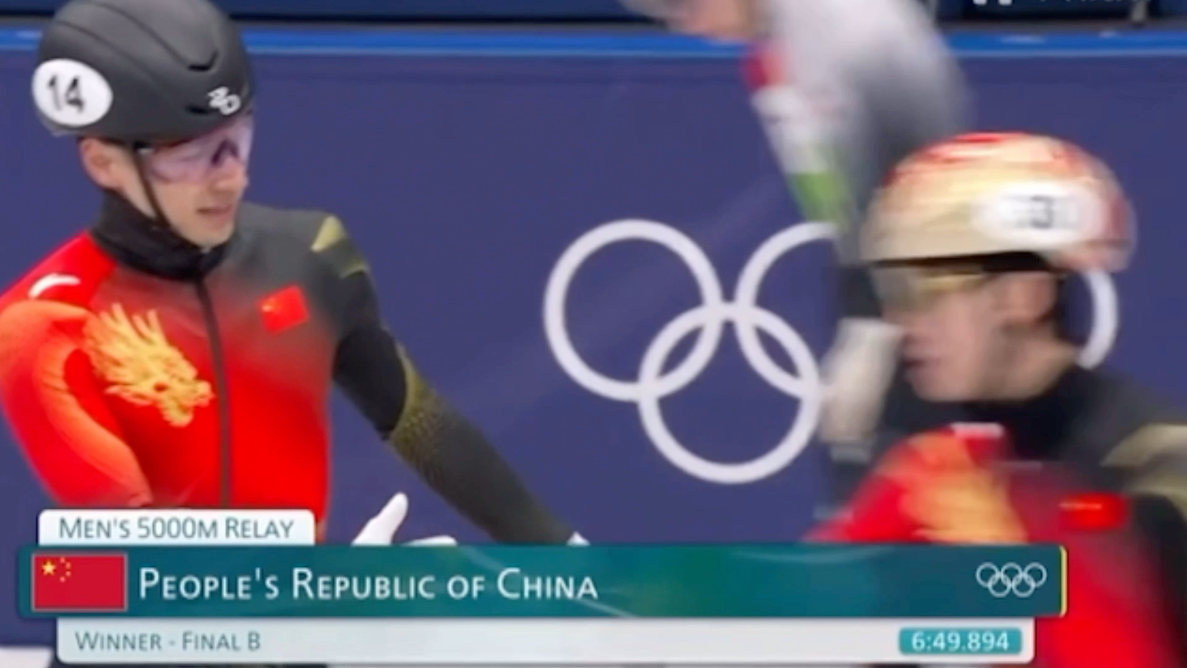 中国队男子5000米接力B组第一这成绩这运气就不能早来一点吗(好吧这就是竞体)中国短道速滑|冬奥会