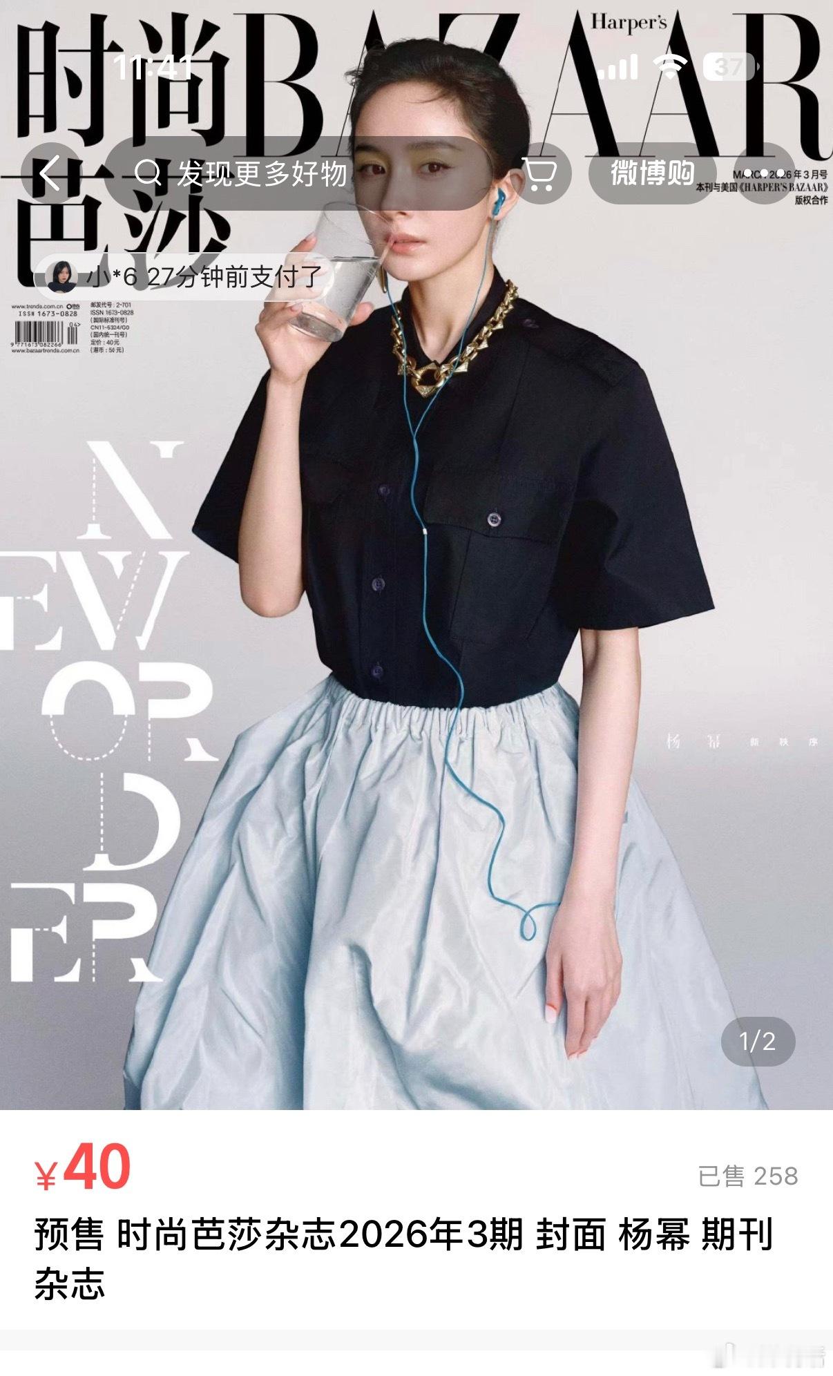 杨幂自由姿态芭莎封面大片 杨幂杂志2小时卖了258本,销售额1w,幂粉现在完全不氪杂志了吗