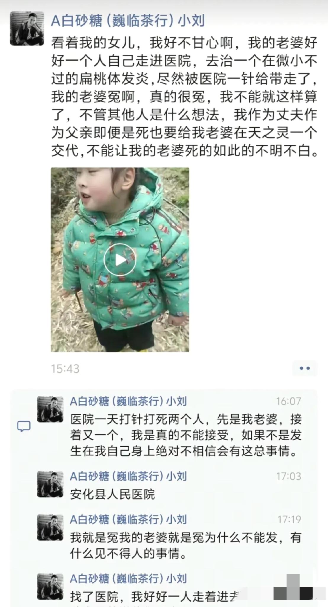 湖南益阳安化县人民医院的院长杨卫,现在只怕是一个头两个大了,原来去世女子丈夫发声,在正月初四那天因为打针出人命的不只是他的老婆,还有一另一个女人,总共两个。 一个小医院一天出了两个命案,这医院的管理水平有多不到位,杨卫这个院长位置,他还能坐得住吗?