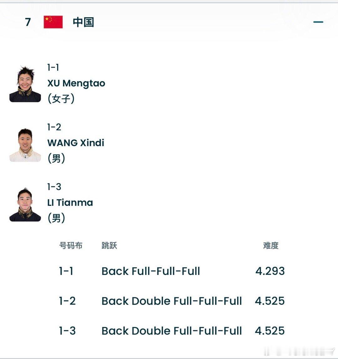 2026米兰冬奥会空中技巧混合团体中国队名单徐梦桃 王心迪 李天马比赛时间:今日17:45