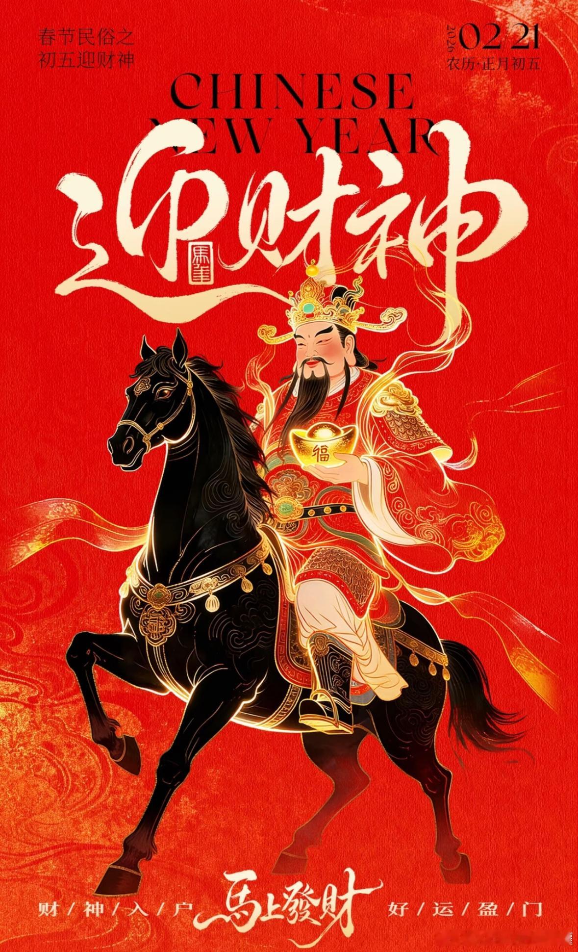 正月初五,财神到祥瑞到,金玉满堂吉星照。