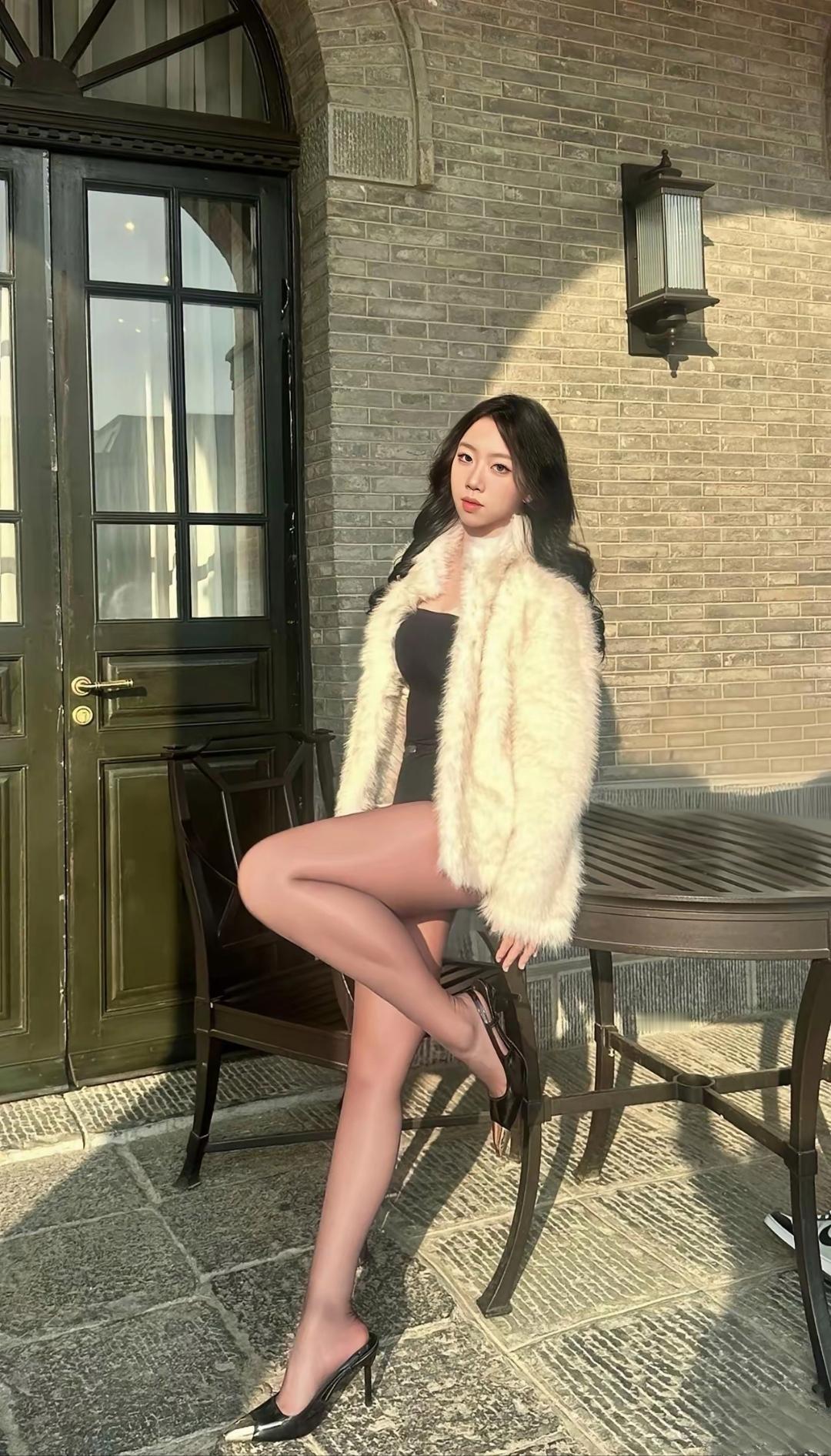 白色皮草搭配黑丝美腿,散发着迷人的魅力!