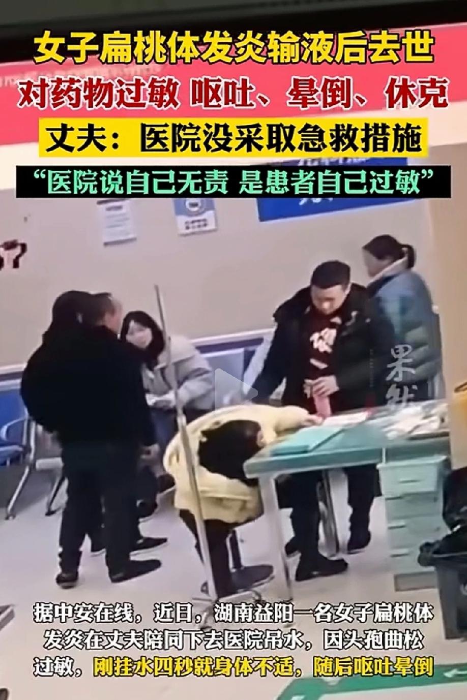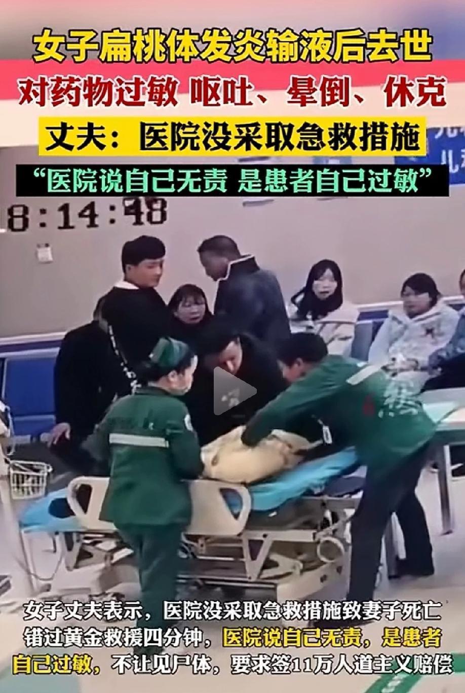 必须追责!湖南益阳,女子扁桃体发炎,去医院输液后去世。原来,女子对头孢过敏,医生没有对她做皮试,也没有询问过敏史,直接就注射头孢曲松,刚输液4秒,女子就出现身体不适,呕吐晕倒休克,医院没有采取任何急救措施,错过了黄金抢救时间。女子家属向医院提出索赔,医院的解释让女子家属实在无法接受。 李女士只是普通的扁桃体发炎,丈夫想着输点液能快点好起来,于是劝说着李女士去医院输液,没想到短短几秒钟,人就没了。 那天,李女士觉得嗓子疼得厉害,扁桃体发炎难受,丈夫想着去医院挂点水好得快一点。 丈夫有些不放心,特意陪着她一起到医院就诊。夫妻俩都以为,这就是个再平常不过的小病,输完液就能好,谁也没往坏处想。 到了医院后,医生简单看了情况,很快就开了输液的药方,其中包含头孢曲松。 按照正常的医疗流程,使用这类容易引发过敏的药物,必须先仔细询问患者有没有药物过敏史,还要做皮试,确认安全之后才能用药。 可这家医院的医护人员,完全把这些关键步骤抛在了脑后,既没问过敏史,也没做皮试,直接就给李女士扎针输液。 药液刚输进去4秒,李女士立刻就出现了强烈的不适。她脸色瞬间变差,紧接着开始呕吐,整个人直接晕倒在地,很快陷入休克状态。 站在旁边的丈夫吓得魂都飞了,一边拼命扶住妻子,一边扯着嗓子大喊救命,希望医护人员赶紧过来抢救。 丈夫意识到这是过敏反应,一定要抓住黄金抢救时间,只要医生护士及时出手,妻子还有救。 可让他绝望的是,不管他怎么呼救,现场的医护人员都没有及时赶来,更没有采取任何有效的急救措施。 那短短几分钟,对丈夫来说像一个世纪那么漫长,眼睁睁看着妻子的情况越来越差,他却无能为力,心里又急又恨,满是无助。 因为错过了最关键的黄金4分钟抢救时间,李女士最终没能救回来,一条鲜活的生命,就因为一次不规范的输液,永远离开了人世。 丈夫怎么也接受不了这个事实,早上还好好的妻子,只是来治个小病,怎么就突然没了。 冷静下来之后,丈夫认定医院存在严重的过错,向医院提出索赔,要求医院承担应有的责任。 可医院的回应,彻底寒了家属的心。 医院不仅不承认自己有任何责任,还把所有原因都推到李女士身上,声称是李女士自己过敏导致的意外,和医院的操作没有关系。 更让丈夫无法接受的是,医院还不让他们见死者的遗体,仿佛想尽快把这件事压下去。 之后,医院又提出,愿意给11万元的人道主义赔偿,但前提是家属必须签下协议,接受这个处理结果,不再追究医院的责任。 丈夫当场就拒绝了这份所谓的赔偿。 他清楚地记得,医护人员没问过敏史、没做皮试,妻子出事之后又没有及时抢救,这一连串的失误,才是导致妻子死亡的根本原因。 医院不仅不反思自己的问题,不承认错误,还用这样的方式敷衍了事,这是他和家人绝对不能容忍的。 一个小小的扁桃体发炎,却因为医院严重违反诊疗规范、漠视生命安全,酿成了无法挽回的悲剧。 从跳过过敏史询问和皮试,到过敏发生后不施救,再到事后推卸责任、拒绝家属见遗体、想用少量赔偿了事,医院的每一步操作,都在不断伤害着死者家属。 如今家属坚持要为逝去的亲人讨一个公道,他们只有一个诉求:必须严肃追责,让失职的医院和医护人员承担应有的法律责任,给逝去的亲人一个交代,也避免类似的悲剧再发生在别人身上。 《民法典》第1218条规定:患者在诊疗活动中受到损害,医疗机构或者其医务人员有过错的,由医疗机构承担赔偿责任。 本案中,医院存在三重明确过错。 第一,违反诊疗规范,使用头孢曲松前未询问过敏史、未做皮试,直接给药。 第二,患者输液4秒即出现呕吐、休克等严重过敏反应,医院未采取任何急救措施,错过黄金4分钟抢救时间。 第三,事后拒绝家属见遗体、以11万元人道主义赔偿推卸责任,进一步印证其过错认知。 李女士死亡与医院违规诊疗、怠于急救存在直接因果关系,医院必须承担全部侵权赔偿责任。 《民法典》第1222条规定:患者在诊疗活动中受到损害,有下列情形之一的,推定医疗机构有过错:(一)违反法律、行政法规、规章以及其他有关诊疗规范的规定;…… 头孢类抗菌药物使用有明确诊疗规范,必须询问过敏史,对高风险药物按要求做皮试,过敏发生后需立即启动急救流程。 医院未问诊、未皮试、不急救,完全违背核心诊疗规范。 同时,医院拒绝家属见遗体、阻挠正常维权,可推定其刻意回避责任、隐匿关键诊疗信息。 医院无法证明自己无过错、无法证明损害与诊疗行为无关,就必须承担全部责任,11万元人道主义赔偿不能免除其法定赔偿与追责义务。