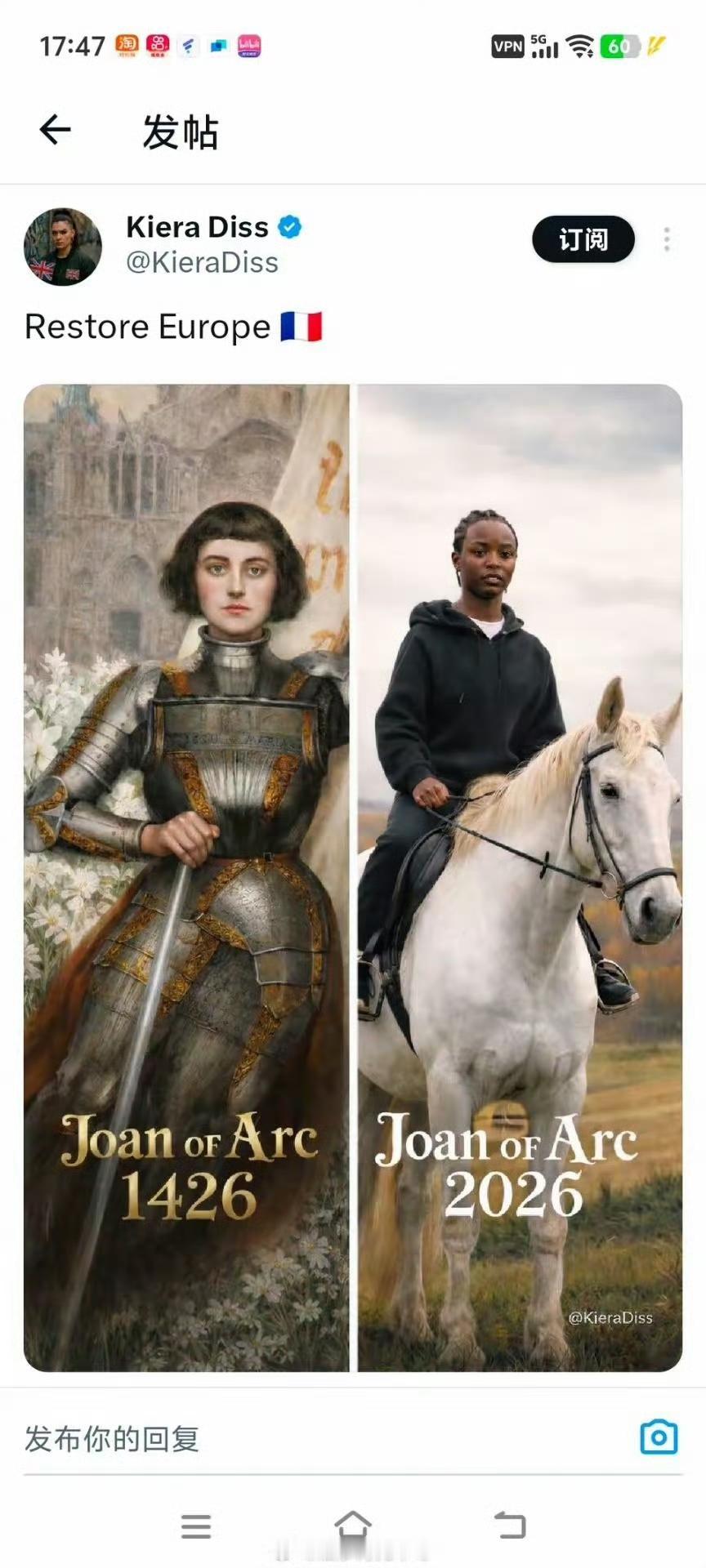 法国彻底废了,圣女贞德也变成黑人了! 看看当初的法国巴黎奥运会开幕式,那都是群魔乱舞。然而,法国还把这种群魔乱舞美化成“文化多元”。 再下去,法国的白种人就要绝种了,要么男的当太监,女的当大胡子爷们儿。反而是非洲人,彻底占领了法国!