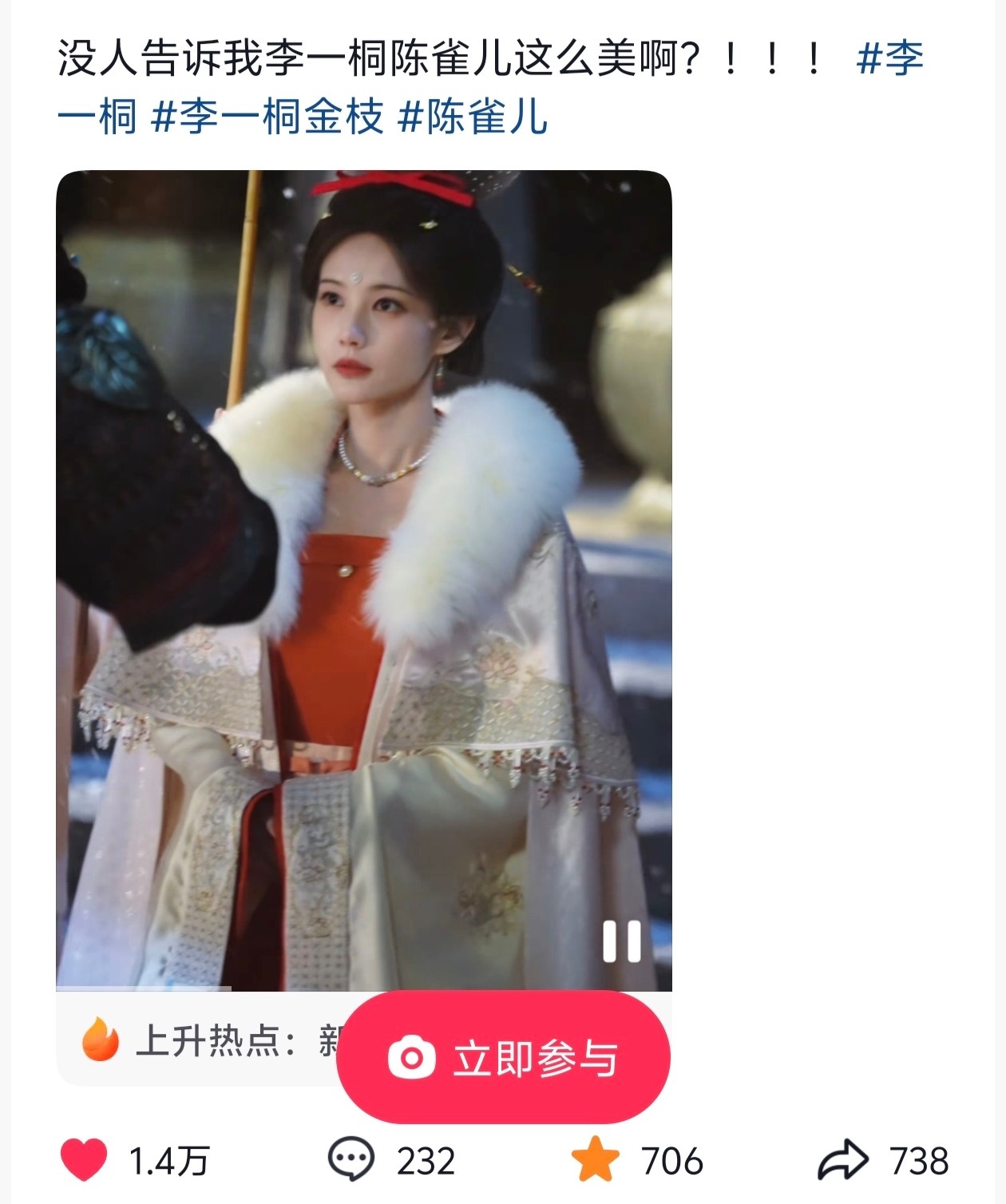 李一桐的古装就是如此权威,《金枝》陈雀儿抖大名词条一切正常,无水分,高👍🏻出圈视频🈶