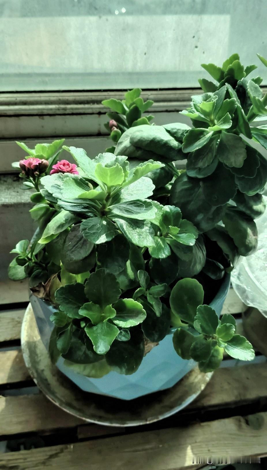 窗台上的一盆绿植开花了。