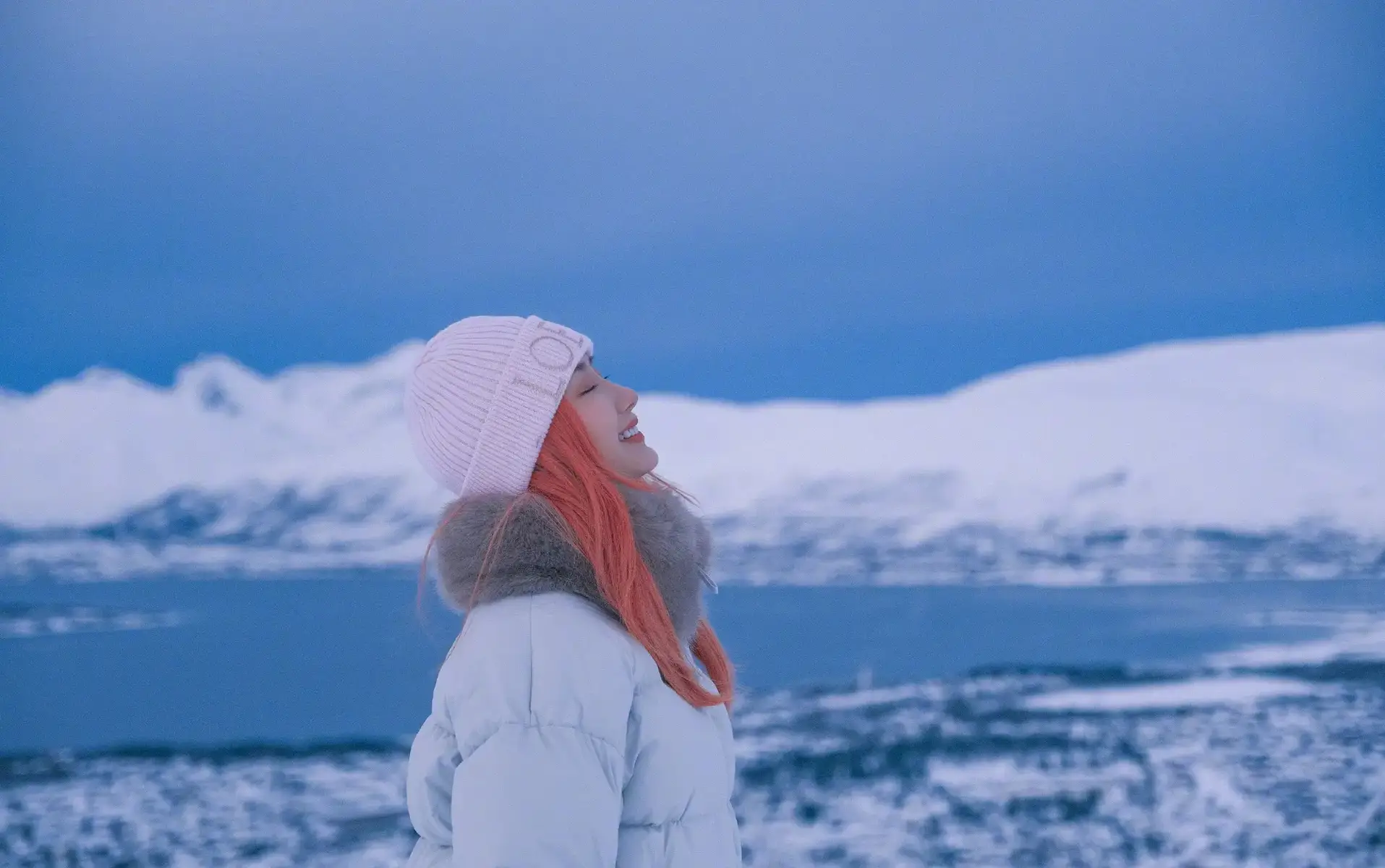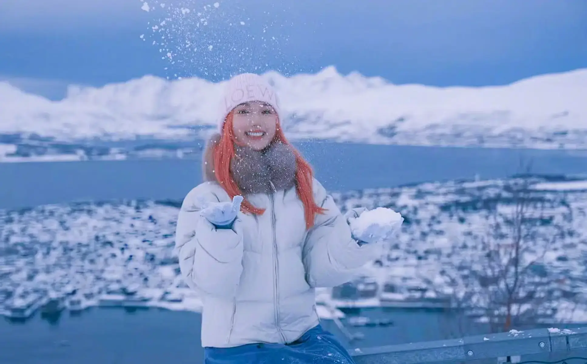 毛晓彤冰天雪地中拍美照!手捧白雪露灿笑,粉色长发吸睛