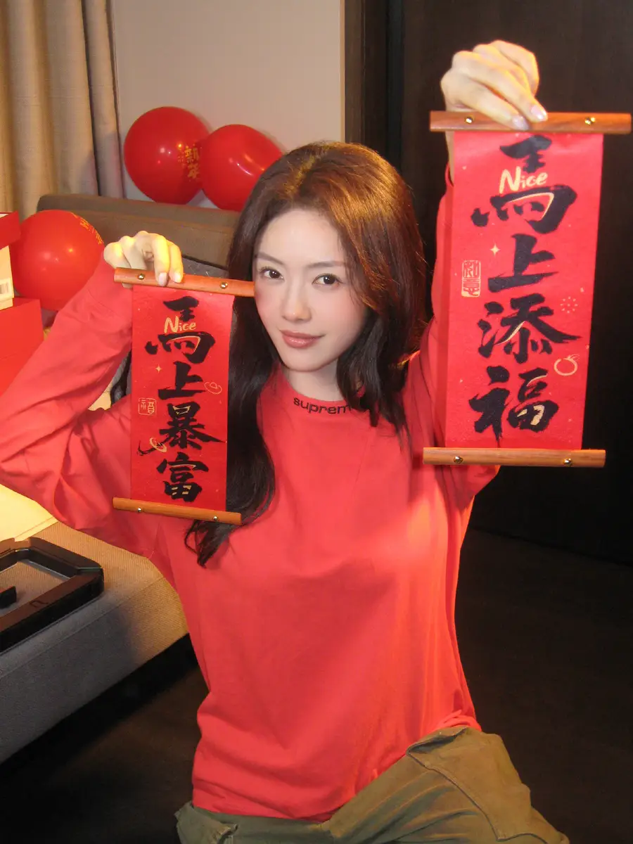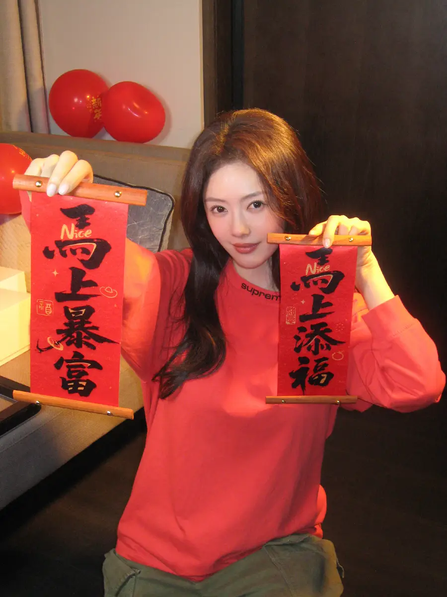 蔡文静红卫衣配长卷发灵动俏皮 浅笑间尽显甜美喜庆