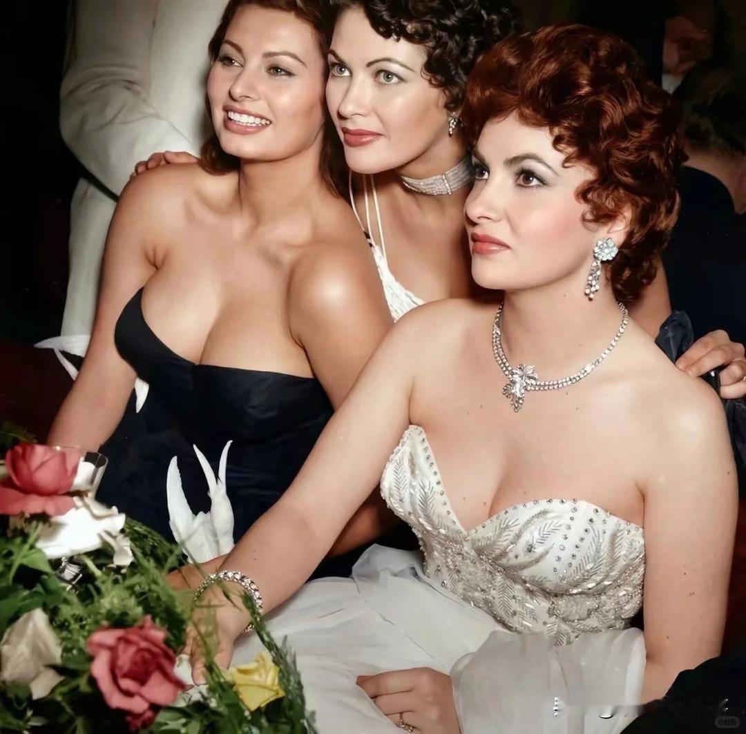 1954年的老照片里,演员索菲亚罗兰,伊冯娜德卡洛,吉娜。劳洛勃丽吉达