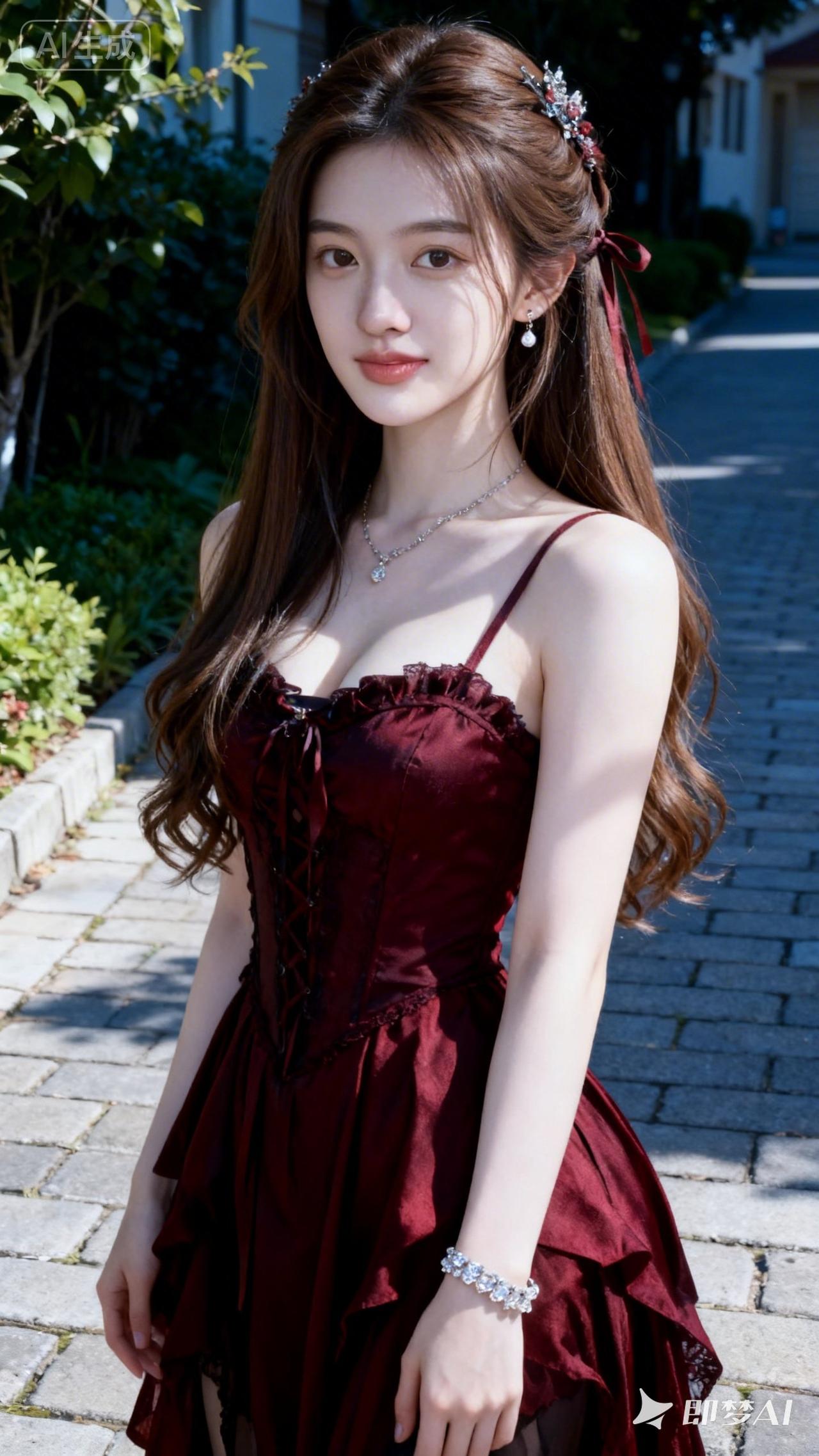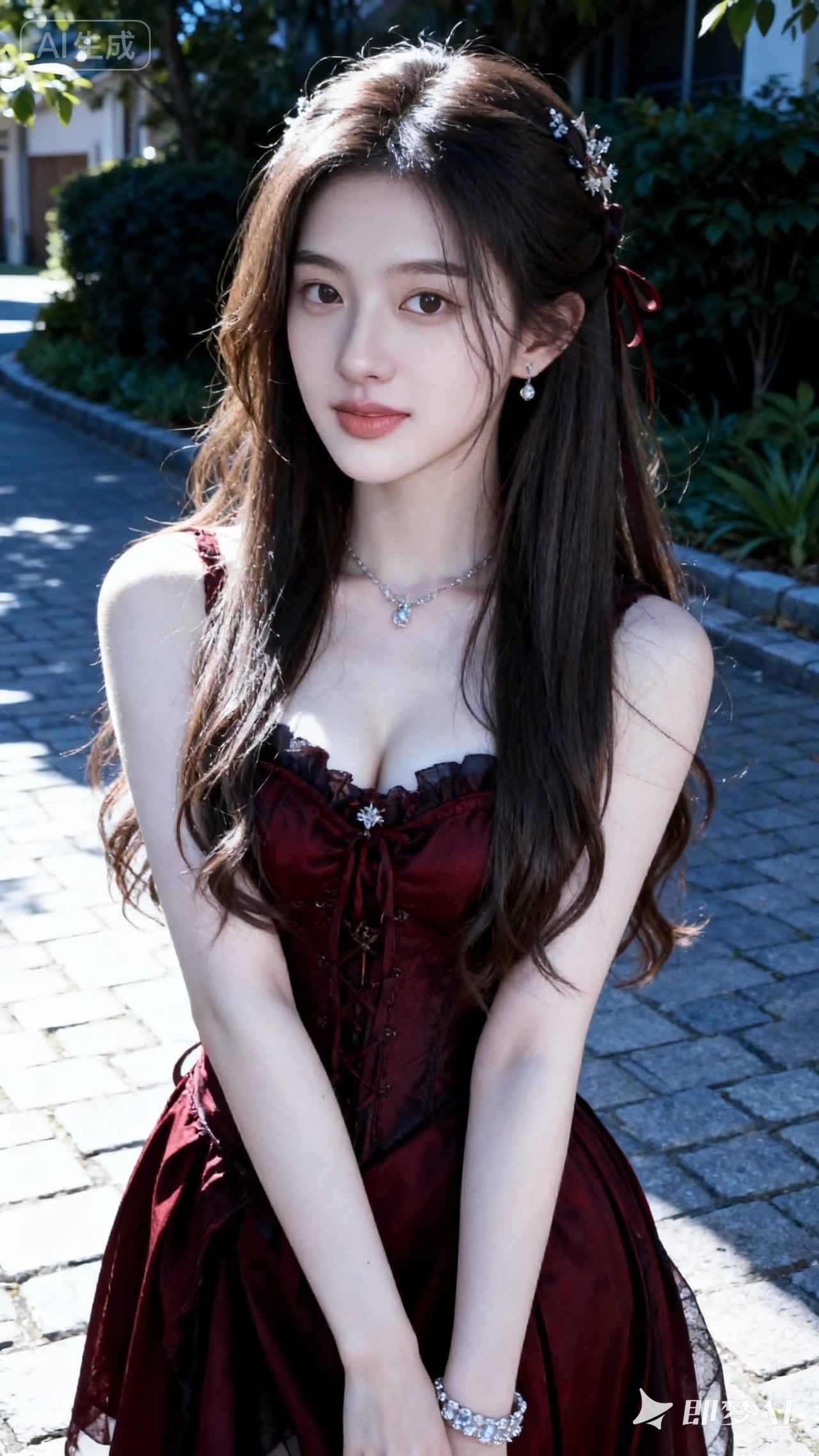 优雅红裙,甜美少女,阳光下的梦幻时光
