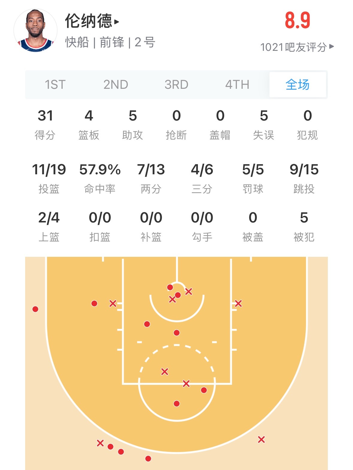 湖人战胜快船 伦纳德31分最后时刻伤病离场东契奇砍38分 里弗斯29分詹姆斯今天13投13分 正负值负7 快船vs湖人