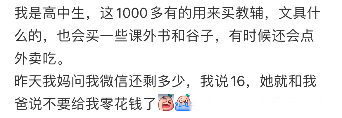 高中生一年1000多的零花钱真的很多吗?