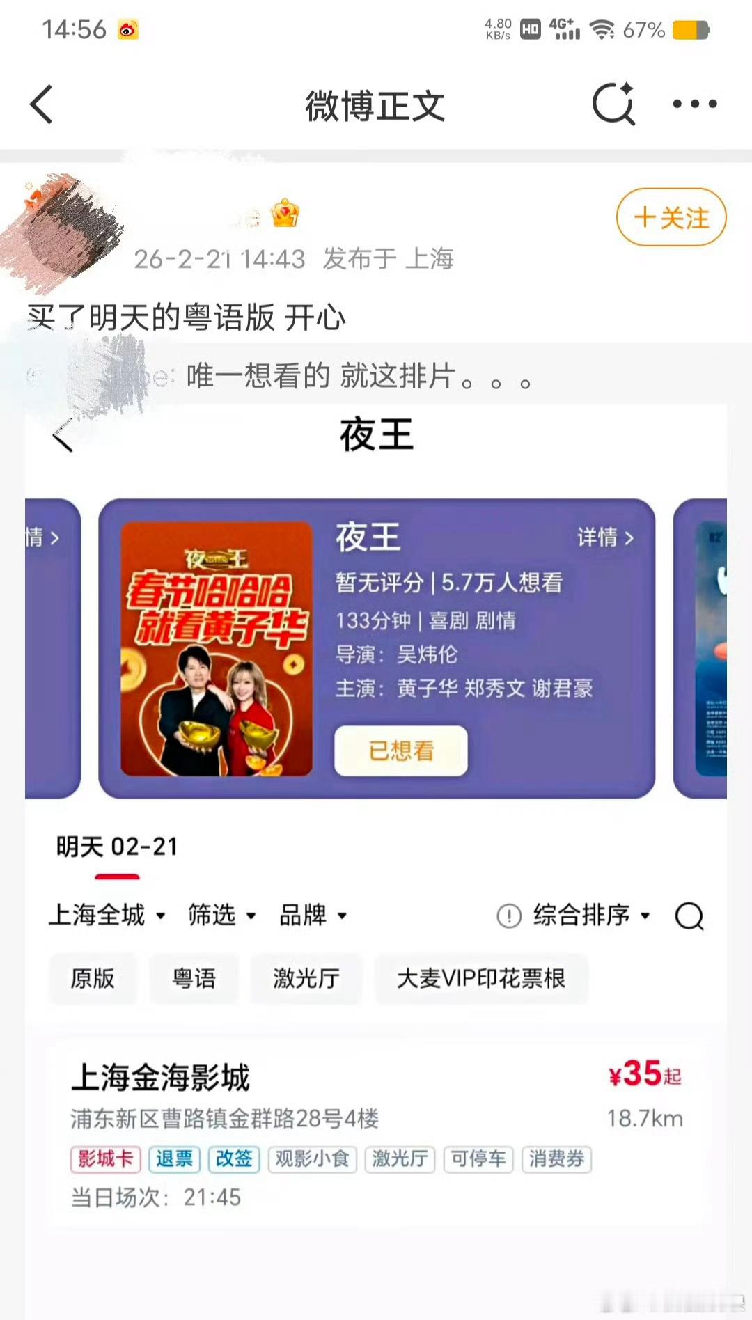 黄子华官宣夜王将全国上映开年好消息终于等到!广深票房已爆,上座率场均人次双第一,《夜王》初七全国上映,准备好被黄子华郑秀文哄笑了。