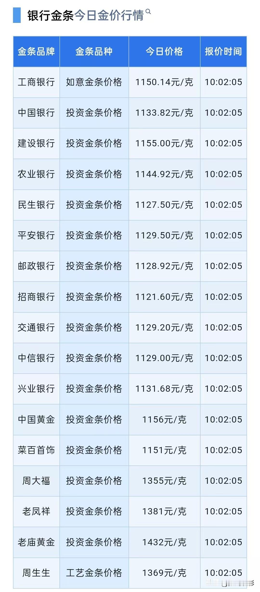 四大银行金条价格查看!以及对于普通购买黄金最保值的方法建议! 今天(2026年2月21日)星期六,下午16点18分。 看看,是哪四大银行? 四大银行分别是中国银行、工商银行、农业银行和建设银行,每家银行都有黄金产品销售和回购业务。 现在来看看,这四大银行金条零售价卖到多少钱一克了? 工商银行如意金条价格1150.14元/克, 中国银行投资金条价格1133.82元/克, 建设银行投资金条价格1155.00元/克, 农业银行投资金条价格1144.92元/克。 同昨天(2月20日)四大银行金条报价相比较,今天四大银行中,有两大银行金条价格上涨了。 来看看,是哪两大银行金条价格上涨了? 它们是工商银行金条上涨了25元/克,建设银行金条上涨了30元/克。 其它两大银行中国银行金条与农业银行金条价格同昨天保持一致。 根据昨日黄金网消息:20日欧洲交易时段,国际金价从前一日的跌势中反弹。美国去年12月个人消费支出(PCE)价格指数当天晚些时候出炉,投资者提前买入黄金,为这份关键通胀数据可能低于预期的情况做准备。 此外,纽约商品交易所白银期货近月合约的未平仓数量仍然较高,表明希望在合约到期时交割白银实物的投资者不在少数,这令市场预期白银供应将持续紧张,当天盘中白银现货与期货价格均显著上涨。 截至北京时间20日19时20分, 纽约商品交易所4月交割的黄金期价报每盎司5054.00美元,涨幅为1.13%; 纽商所3月交割的白银期价报每盎司80.895美元,涨幅达4.24%; 伦敦现货黄金报每盎司5031.53美元,日内涨幅为0.61%; 伦敦现货白银报每盎司80.806美元,日内涨幅达3.09%。 来看看普通人群怎么购买黄金? 2026买黄金,记住这几句,不搞复杂策略,不说专业术语,只给你最稳妥、最走心的建议: 1. 定位要对:黄金是“配置”,不是“投机”拿总资产的5%–15%配黄金就够,不重仓、不加杠杆。它负责稳,不负责赚大钱。 2. 时机要稳:不追高,跌了分批买大涨时管住手,回调时小步加仓。越跌越买、越涨越卖,比猜顶摸底靠谱一万倍。 3. 选品要纯:只买“能变现”的黄金投资选:银行金条、黄金ETF、正规投资金,按克计价、手续费低;首饰选:自己喜欢、日常佩戴,别把首饰当投资,工费高、变现亏得多。 4. 心态要平:拿得住,才赚得到黄金的收益,要以年为单位看。短期涨跌随它去,长期拿住,才能穿越周期。 分享个怎么购买金条最划算,能帮大家少花冤枉钱。 第一,买金条首选银行,千万不要去金店买。银行的金条带塑封,证书票据齐全,价格是当天国际金价上浮10~15块钱,这是普通人能买到的最便宜的,还能保真金条。 金店的金条价格比当天国际金价高出80~180块钱,非常不划算, 第二,银行金条有很多种,想要长期投资又想省事儿,建议直接买价格最便宜、造型最普通的投资金条。 还有一种是公益金条,比如生肖金条和纪念金条,虽然更好看,但价格更贵。回收时不看造型,只要是足金都是一个价,所以买投资金条更划算。 第三,普通人买金条,认准中、农、工、建这几个银行就可以了,他们的金条属于银行自有品牌,只要票据齐全,不拆封,还能找银行回收。 很多小银行卖的金条是代销的贵金属公司金条,回收只能自己找金店。 温馨提醒哦!银行买金条还要注意: 金条带有钢印编号,但是有的银行没有钢印而有的只有50g以上规格才有,在买之前要问清楚,到底有没有正式钢印,避免万一买到假货了,到时候引起不必要的麻烦。 还有哦!买好金条之后,包装不要拆掉了,因为包装一拆,好多银行就不再回收了,又要找另外渠道了。 另外,注重提醒,购买之前千万不要选错了,自己买选最基础的实物金,别选积存金和工艺金。 还有哦!金条的回收价格计算是按,金条的回收价格主要是根据当天的国际实时金价和金条的纯度与重量来计算的,与哪个品牌是无关的。 加再上每个回收商会在收取一定的服务费。公式:(实时金价-服务费)x克重。服务费每克5元至20元不等。 最后还是那句话,所有信息都只是提供参考价值!理财也有风险,恳请大家不要盲目跟风,要理性看待! 金条行情 投资金条 银行金条 银行金条价 银行实物金条 金条市场 2g金条金条避坑 银行黄金 银行金条价 黄金一克小金条 银行金条 投资金条 金条行情