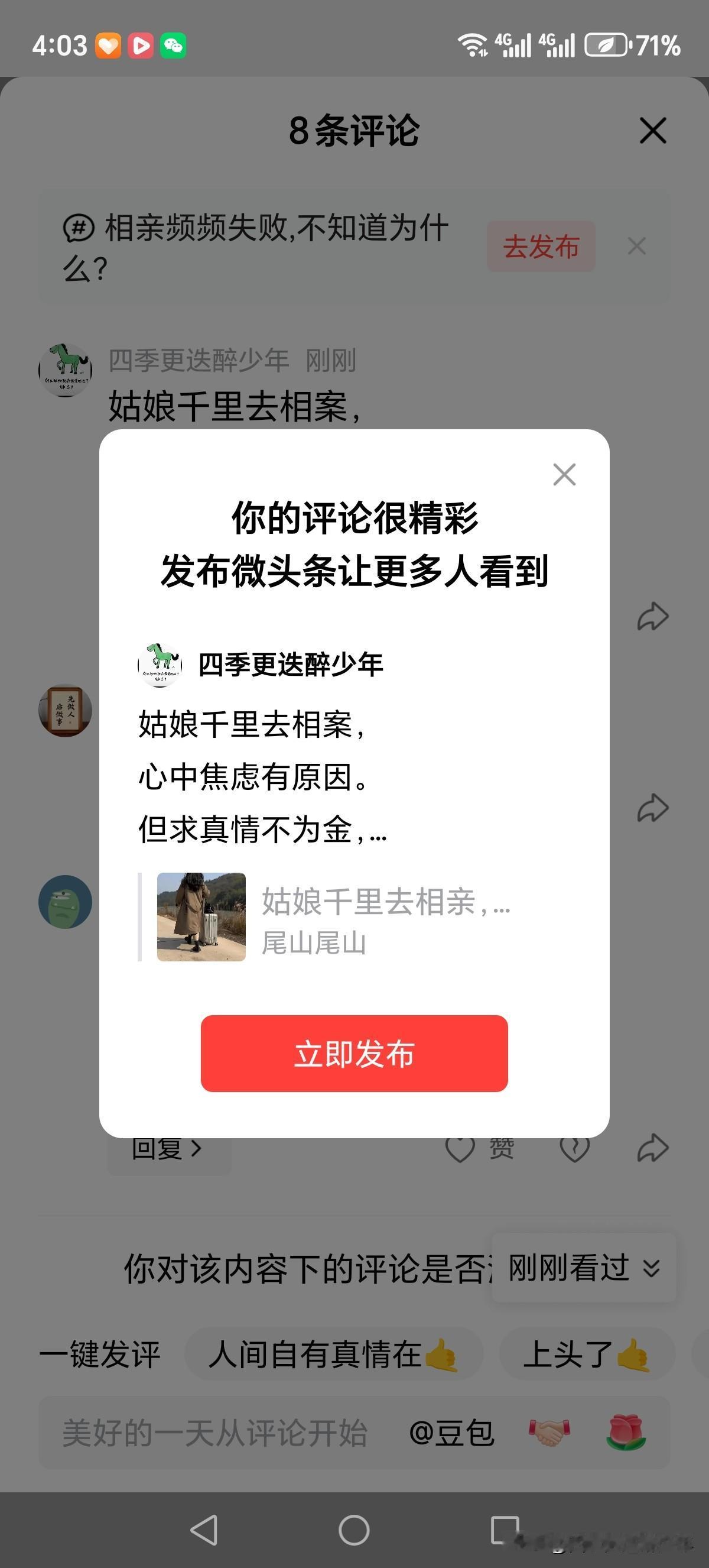 姑娘千里去相案, 心中焦虑有原因。 但求真情不为金, 只愿找到满意人。