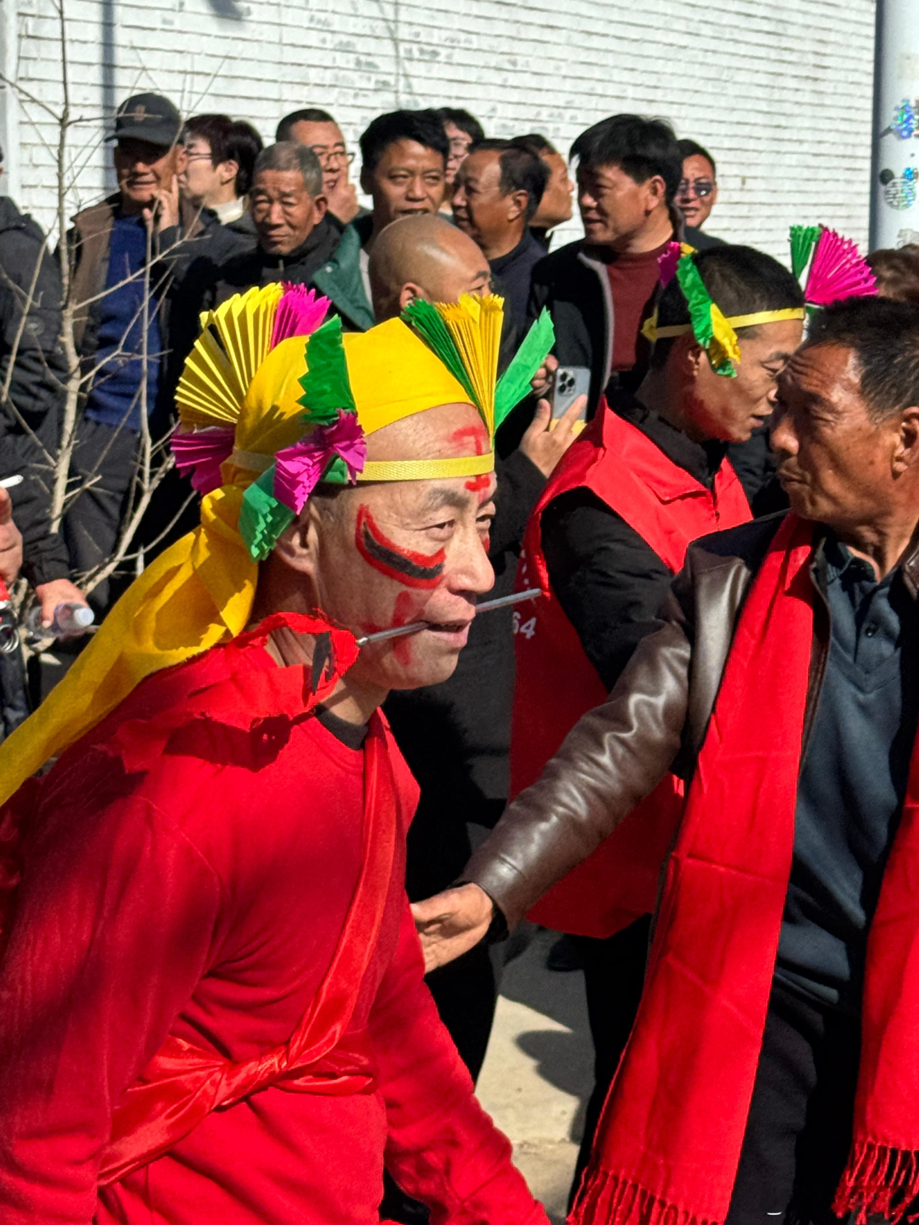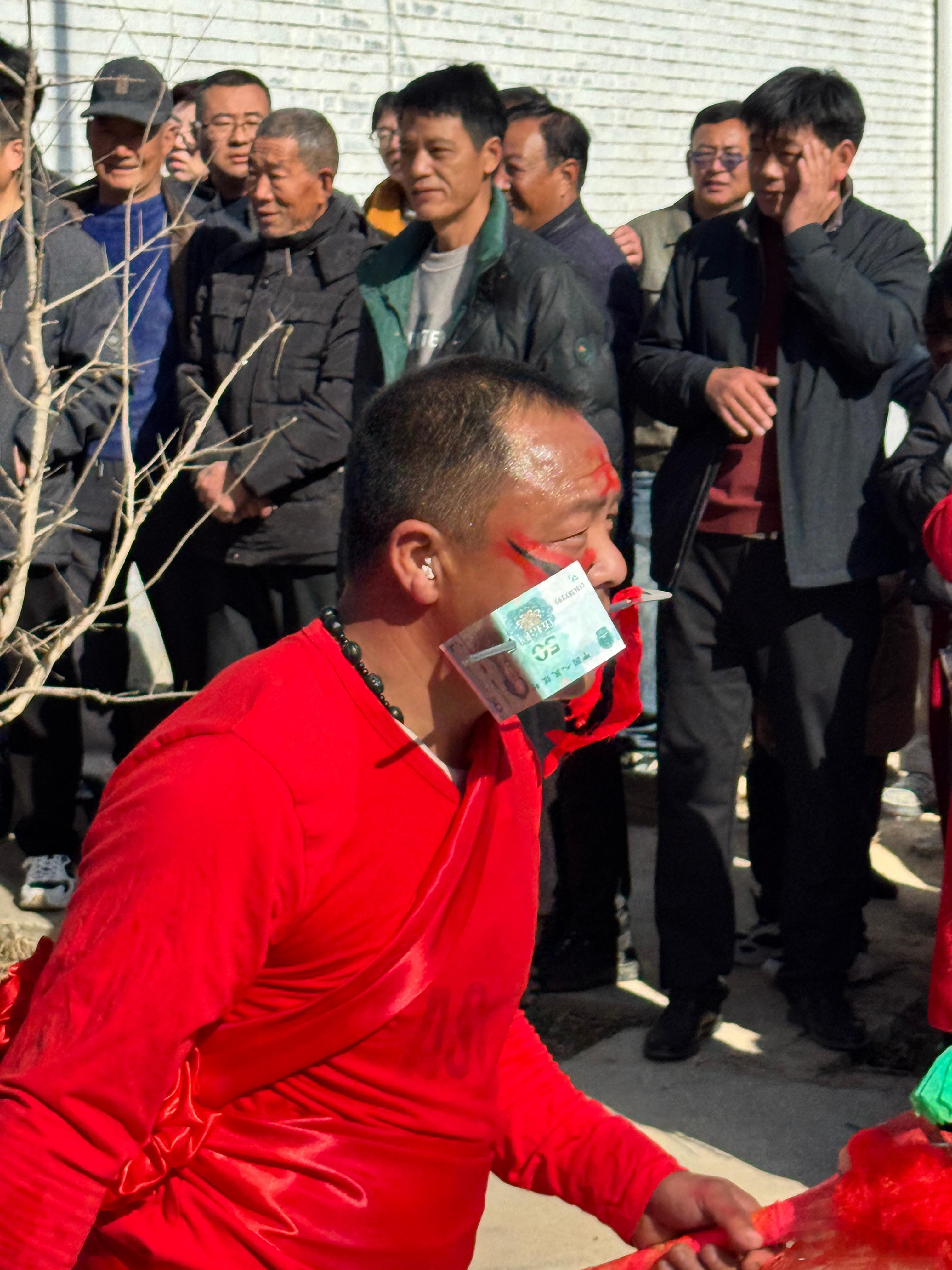 寓意勇敢、吉祥,还有麻绳做的鞭子挥鞭驱邪,挺热闹的,围了很多观众都来图个吉利。 运城
