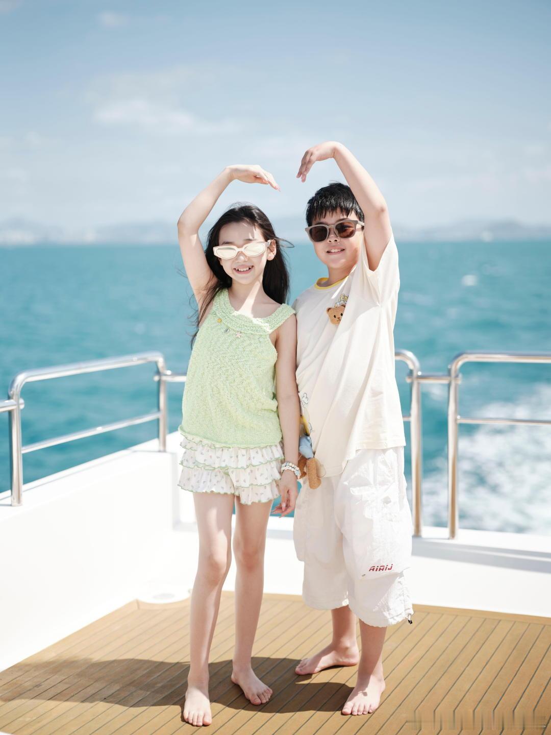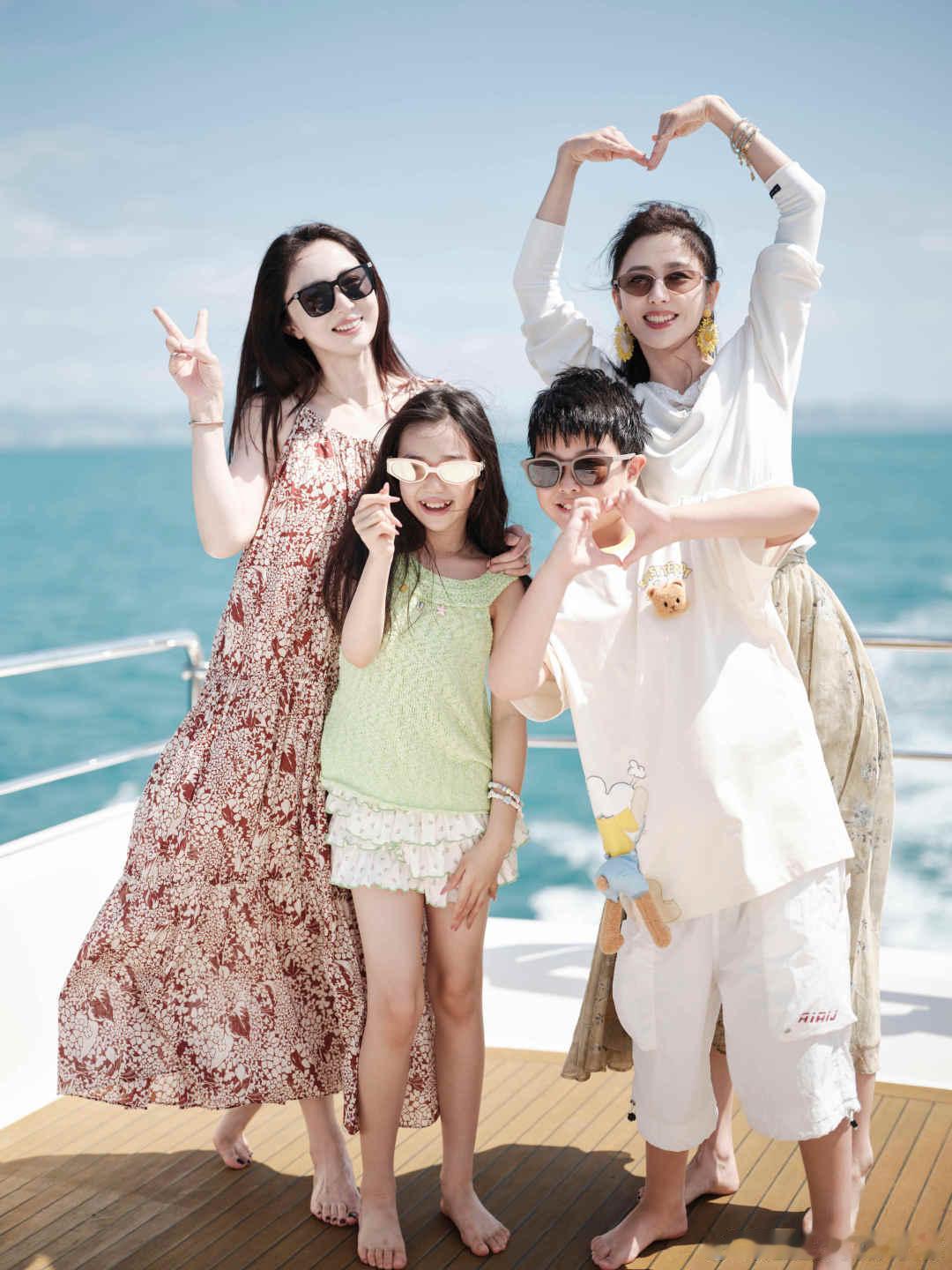 董璇佟丽娅两家人出海董璇佟丽娅两家人员一起出海玩,看着就很愉快啊。小酒窝朵朵比心