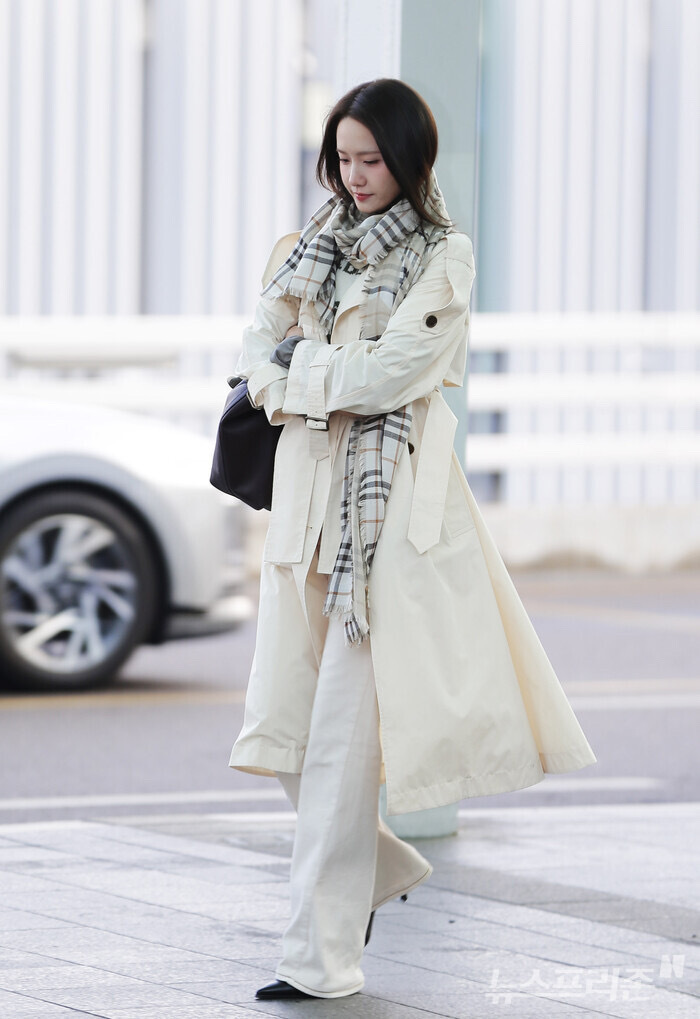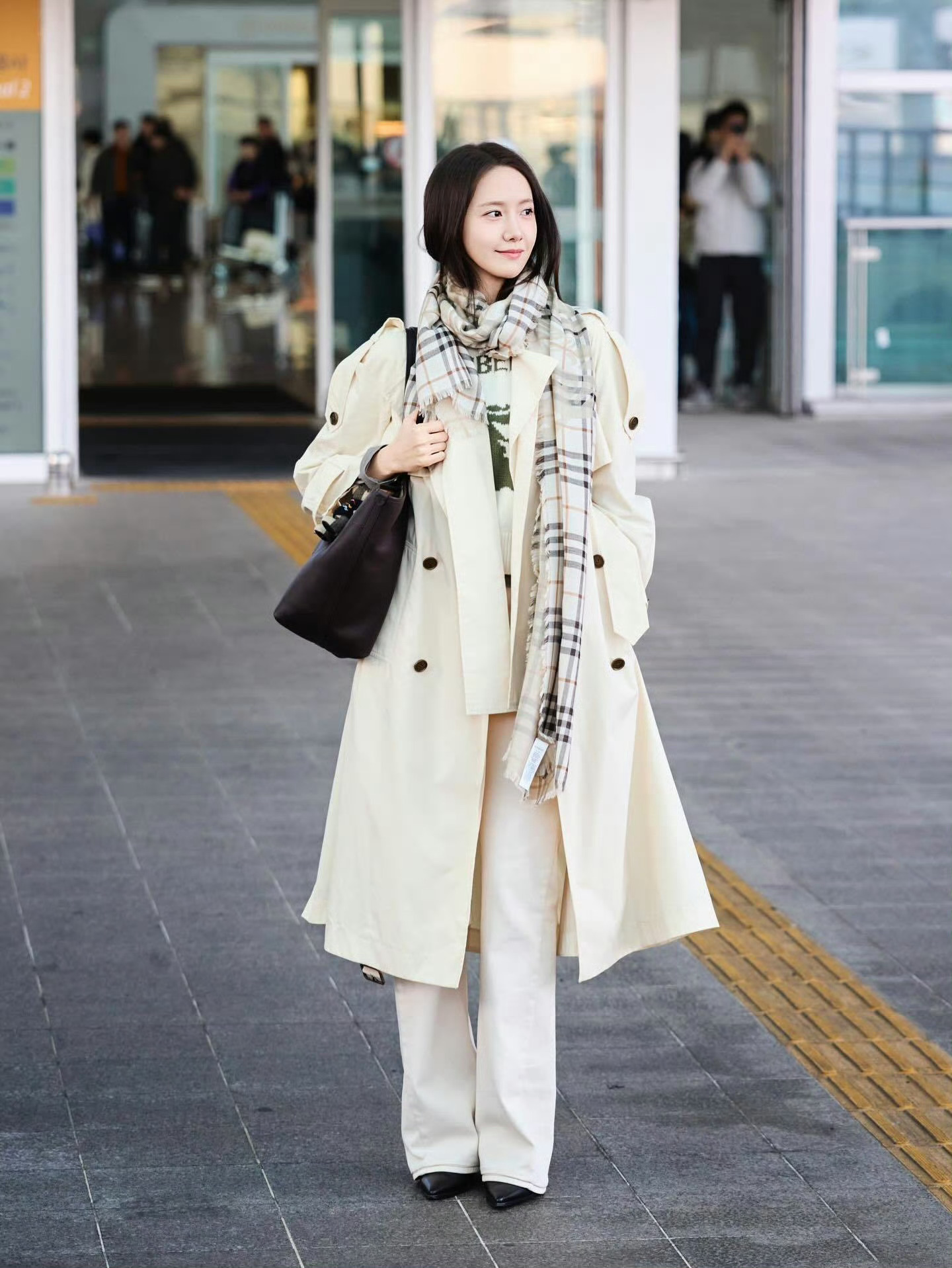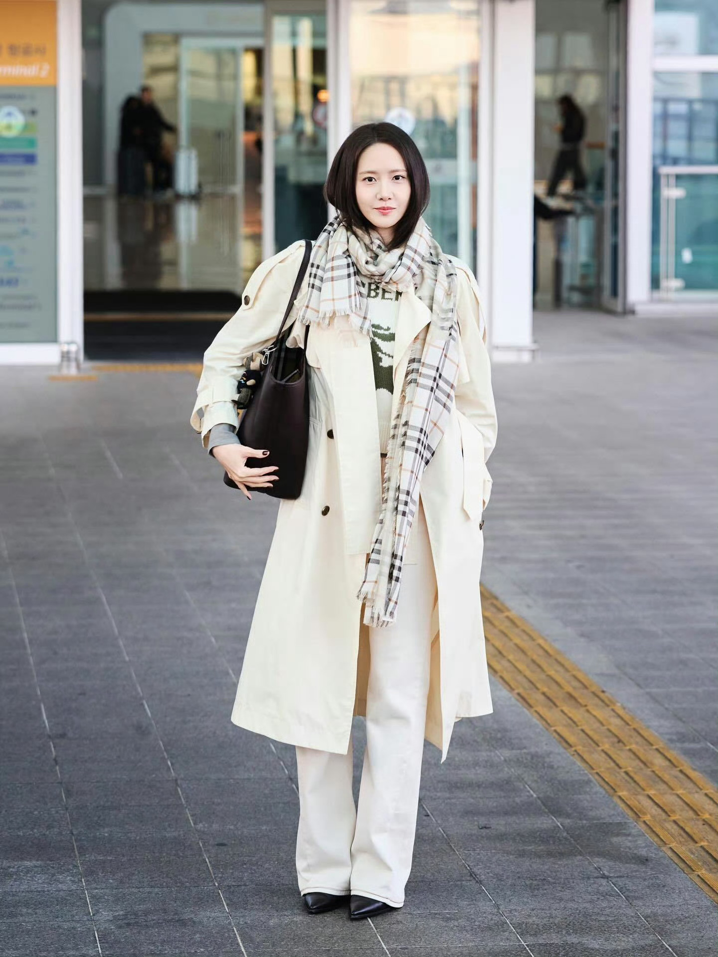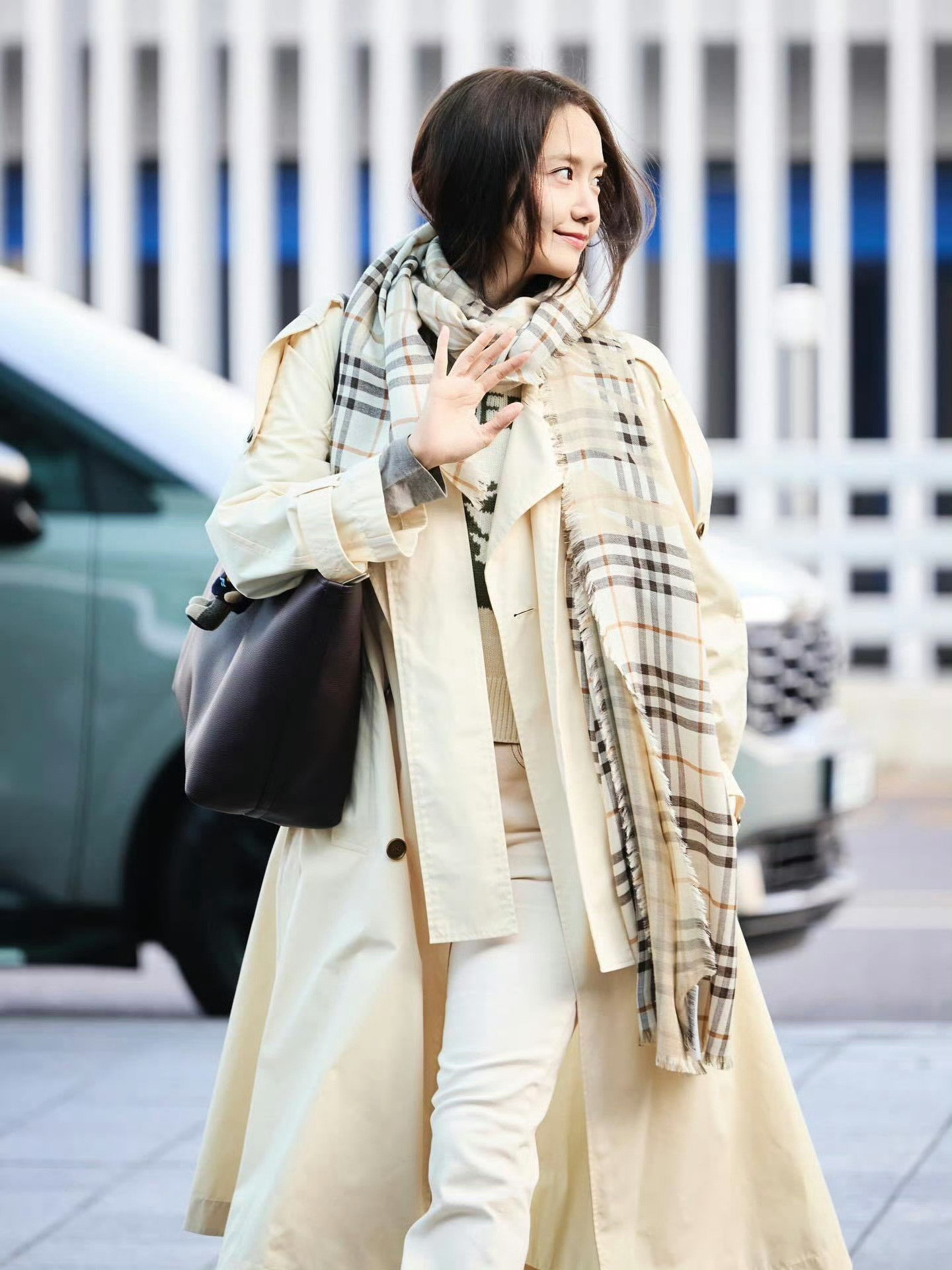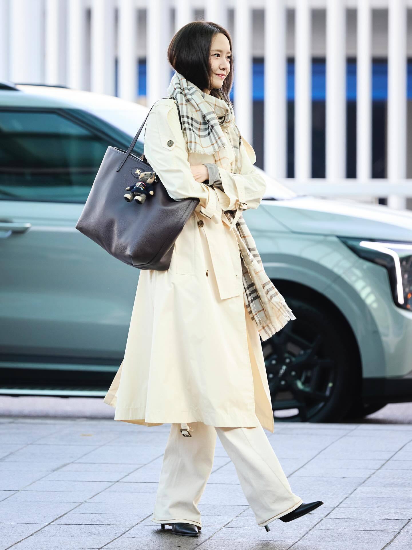 林允儿 in Burberry 伦敦时装周受邀出席品牌2026秋冬大秀经典风衣搭配格纹围巾