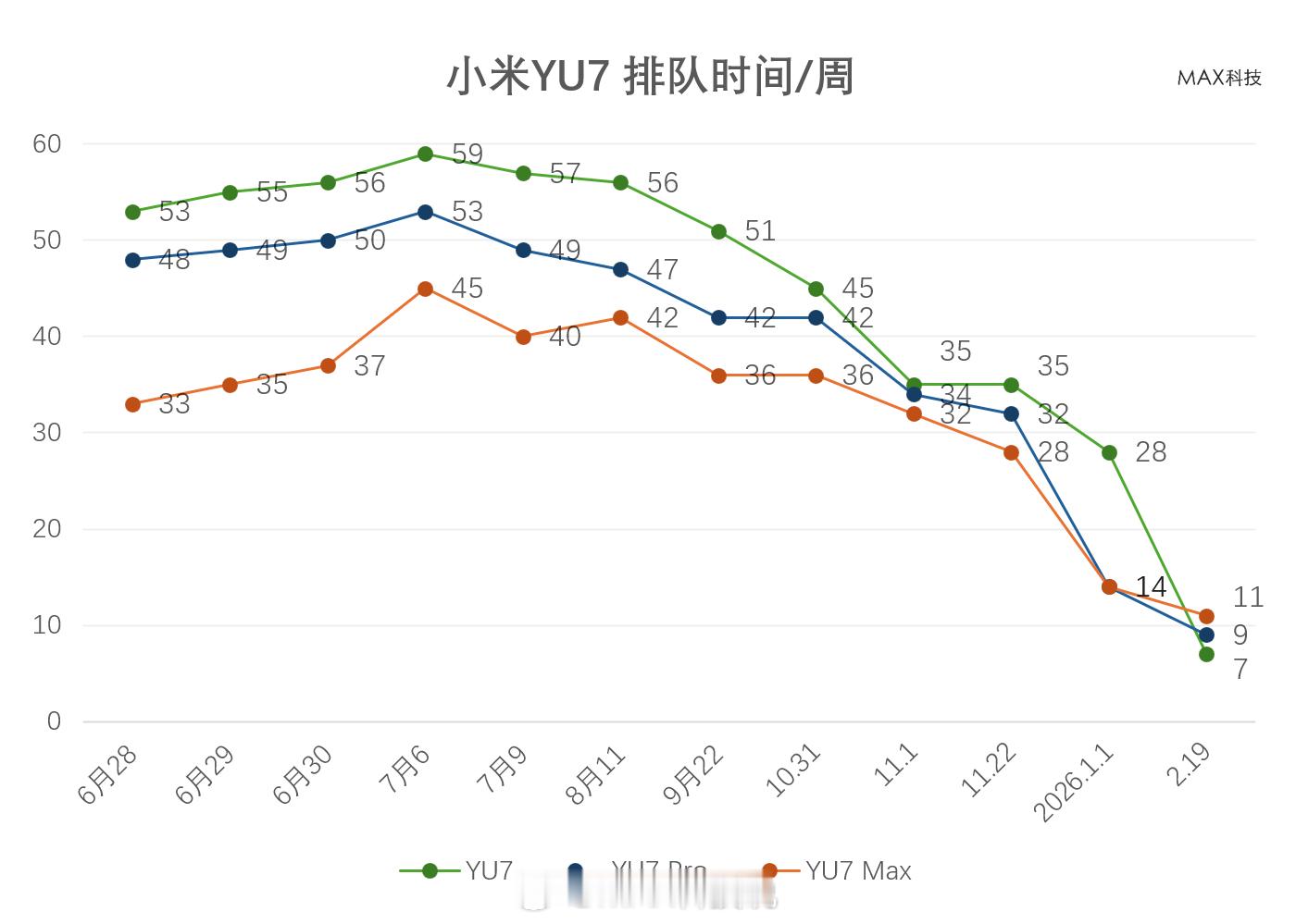 看了一眼小米YU7 最新排队时间,最短只需要7周了,标准版直接缩短21周