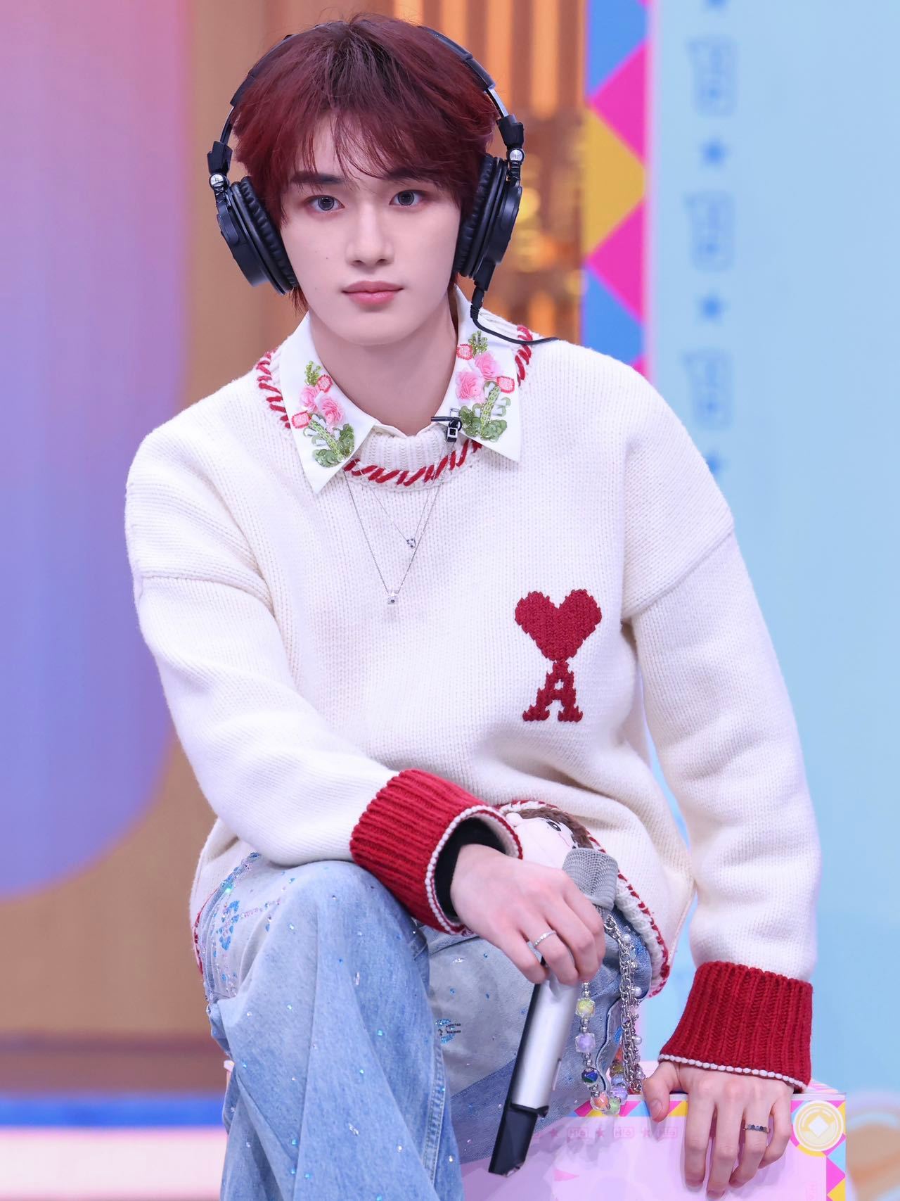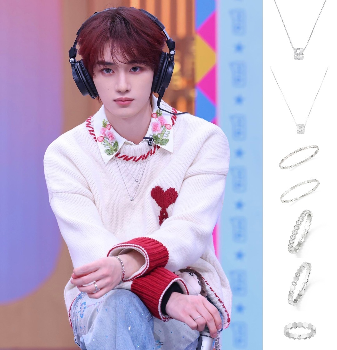 丁程鑫今日份《你好星期六》节目Look,身着AmiParis针织衫搭配珠绣领衬衫及烫钻牛仔裤,佩戴CHAUMET Bee de Chaumet系列珠宝,贵气自在,尚美也是和小丁个人合作非常多的珠宝品牌 ~