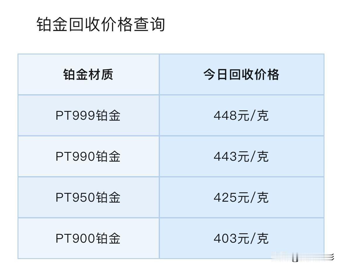 国际铂金上涨!以及铂金、钯金价格表与回收报价! 今天(2026年2月21日)星期六,下午17点06分。 先来看看,各品种铂金回收报价为多少钱一克了? PT999铂金回收价格448元/克,PT990铂金回收价格443元/克,PT950铂金回收价格425元/克,PT900铂金回收价格403元/克。 同昨天(2月19日)各品种铂金回收报价相比较,今天各品种铂金回收价格都整体上涨了。 PT999铂金、PT990铂金回收价格各分别上涨了19元/克,PT950铂金回收价格上涨了18元/克,PT900铂金回收价格上涨了17元/克。 再来看看,各品种钯金回收价格分别为多少钱一克了? Pd999钯金回收价格324元/克,Pd990钯金回收价格320元/克,Pd950钯金黄金价格307元/克,Pd900钯金回收价格291元/克。 同昨天(2月19)各品种钯金回收报价相比较,今天各品种钯金回收价格也都整体上涨了。 Pd999钯金、Pd990钯金回收价格各分别上涨10元/克,Pd950钯金、Pd900钯金回收价格各分别上涨了9元/克。 贵金属今日价格走势分析:2026年2月21日,今日金价银价再度飙升,现货黄金持续拉升103美元向上触及5090美元/盎司关口,现货白银日内涨超7%向上触及84美元/盎司关口,铂金钯金同步上涨,此次价格上涨的原因:一是美国四季度GDP数据低于预期释放经济疲软信号,二是美国最高法院裁定特朗普的贸易税政策不合法,引发市场对中长期贸易政策的持续担忧,特朗普将在现有关税基础上加征10%的全球关税;三是美元指数走软。 截至10时08分,现货黄金上涨2.06%至每盎司5098.5美元,现货白银上涨7.5%至每盎司84.22美元,现货铂金上涨3.85%至每盎司2156.6美元,现货钯金上涨3.2%至每盎司1748.3美元。 黄金实时价格1132元,白银实时价格20.8元,铂金实时价格490元,钯金实时价格396元。 黄金后市如何? 有分析师表示,“黄金的看涨逻辑还在:央行购金、全球去美元化、美联储降息预期、地缘政治风险上升等。” 不过,虽然“牛市”基础和核心逻辑还在,但不代表可以忽视风险管理。基于地缘政治和美元信任危机的大背景,各国将持续推行财政扩张政策,这将导致主权货币信用下降,从而推动多国央行积极增持黄金。 另外还有有关业内人士提醒! 业内专家指出,当前黄金等贵金属价格处于历史高位,投资者参与其中务必保持理性。“从近期市场的波动可以看出,即便贵金属市场可能再创新高,也不意味着可以持续做多。如果一些因素触发投资者获利回吐,也可能会迅速拉低金银等贵金属价格。” 注意:铂金回收有这以下4个知识点,特别的重要,谨防上当吃亏。 第一,铂金回收是不需要发票和以前的购买凭证的。如果有人跟你说因为没有发票要扣你手续费,那他一定是在坑你。 第二,铂金回收是没有折旧费一说的,不管你是戴了几十年还是刚刚买的,回收的时候只看重量和纯度,只要纯度是3个9以上的,回收价格都是一样的。 第三,卖之前一定要知道自己首饰的精准克重,以防被其他人偷秤。 第四,铂金回收就是按照当天的国际金价减个几块钱一克回收,所以要提前查一下当天的国际金价。 只要注意这4点,根本没有人能够坑得到你。 最后说声,所有信息,都只是提供参考价值! 投资有风险,理财需谨慎! 铂金回收行情 铂金价格 铂金价格波动 铂金行情分析 铂金钯金价格 铂金回收价值 铂金走势
