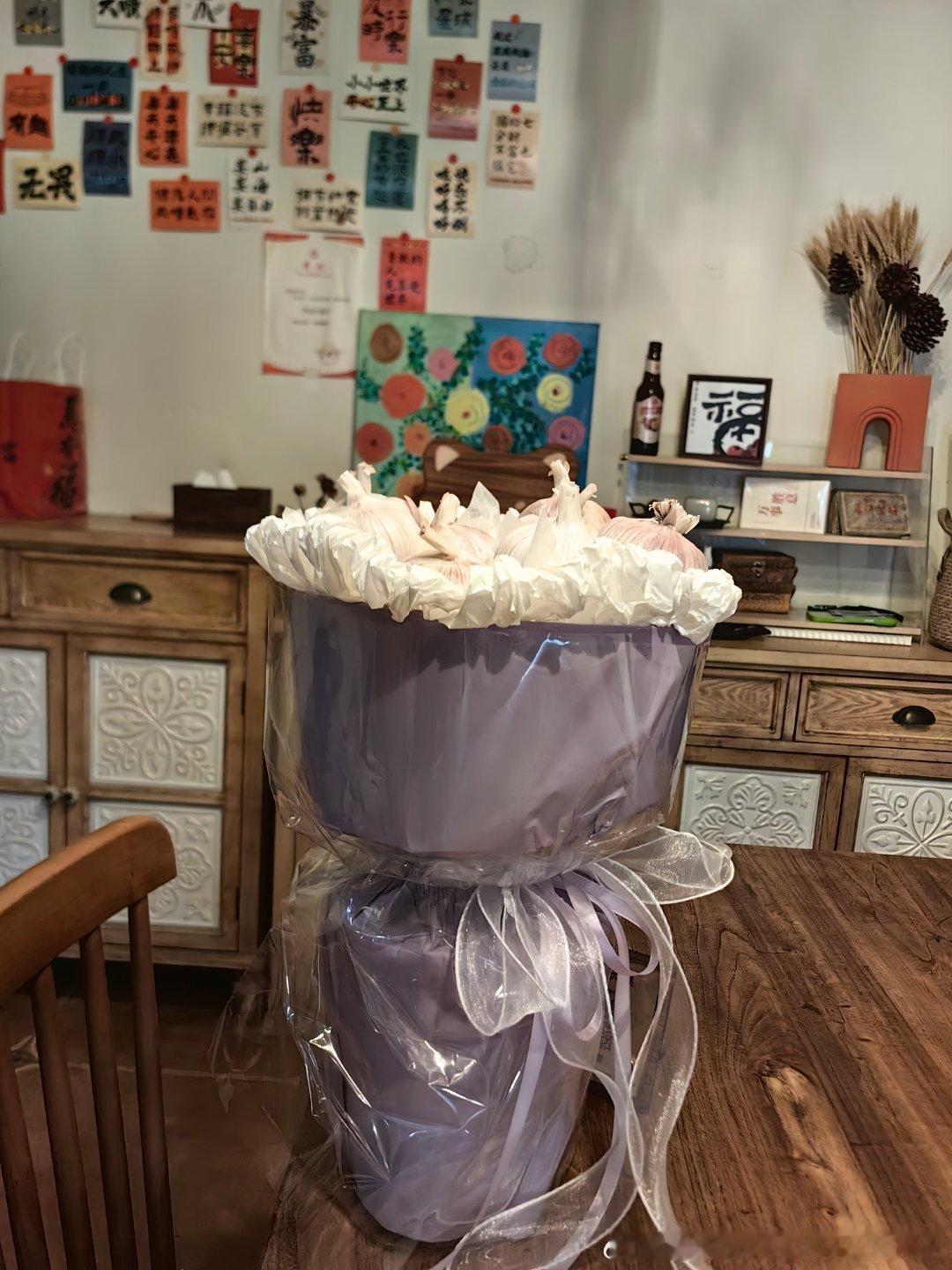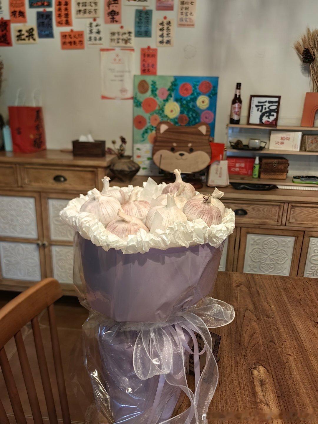 朋友送了一束花,仔细一看,花瓣上面全是蒜头。送的好不如送的巧,要做晚餐正好没蒜头正好拔一个用
