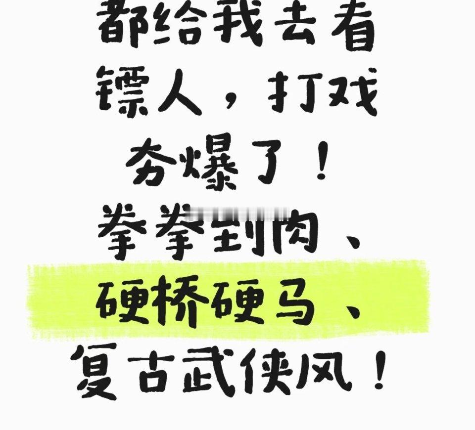 镖人 那尔那茜《镖人》真的把中式武侠的魂拍活了,年度最佳武侠片实至名归!全程无尿点,打戏堪称天花板级别,拳拳到肉的真功夫对决,实景拍摄的大漠风沙质感拉满,每一帧都燃到肾上腺素飙升,完全没有特效堆砌的悬浮感,看得人酣畅淋漓!剧情有血有肉,江湖味儿纯到骨子里,大漠中的快意恩仇、侠义与守护刻画得淋漓尽致,每个角色都鲜活立体,连细节都打磨得超用心。老戏骨与新生代演员演技在线,全员演技与打戏双炸裂,沉浸式的观影体验直接拉满,大银幕看真的太震撼了!这才是我们想要的武侠片,诚意满满、质感上乘,既有热血燃炸的动作场面,又有直击人心的江湖浪漫,刷完只想二刷,春节档闭眼冲,绝对值回票价!