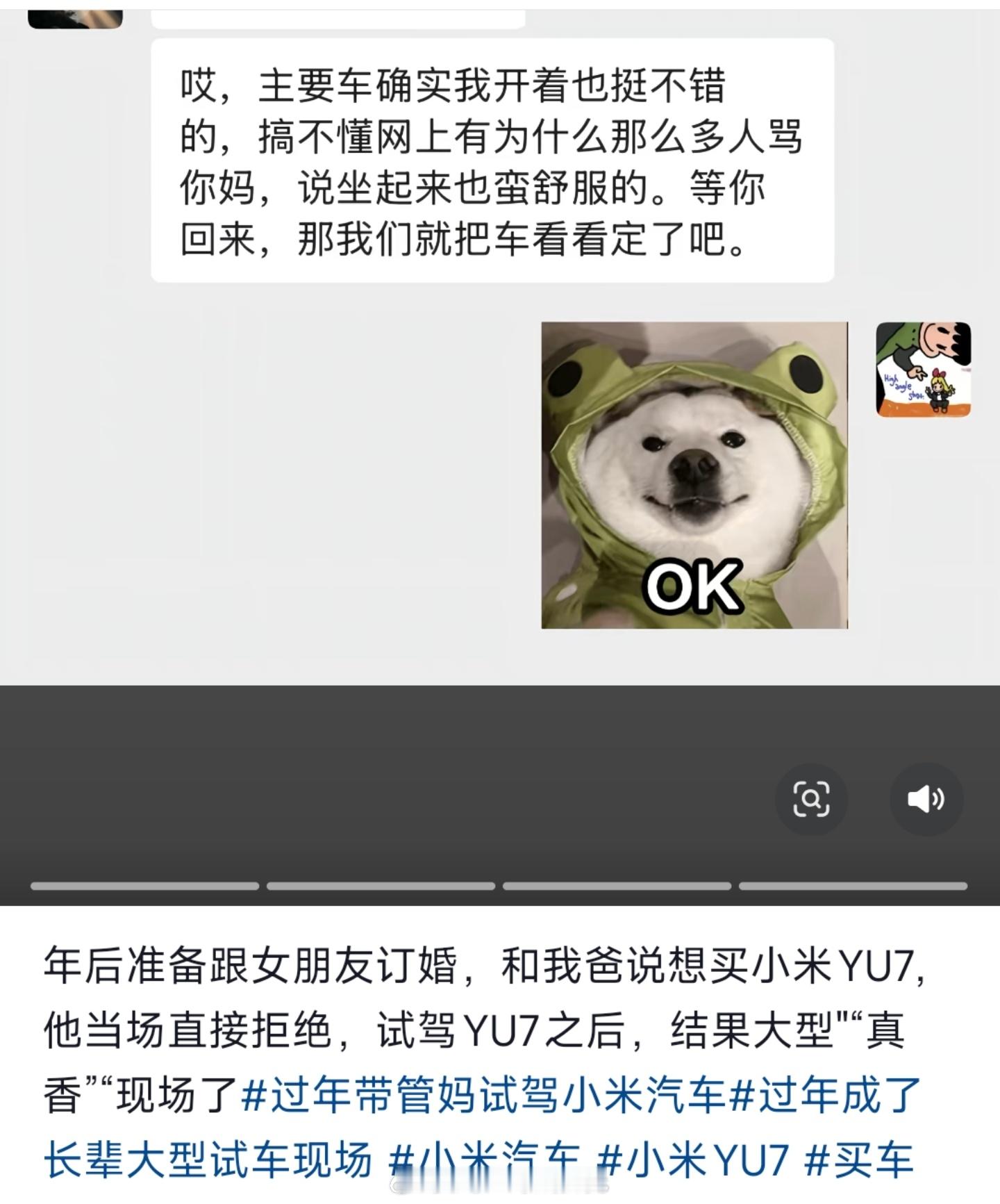 这个春节,小米汽车成了不少家庭的新成员,有很多YU7车主跟我讲述他们的故事,从年轻人到长辈都赞不绝口,已经成为每个人心中美好的种子。