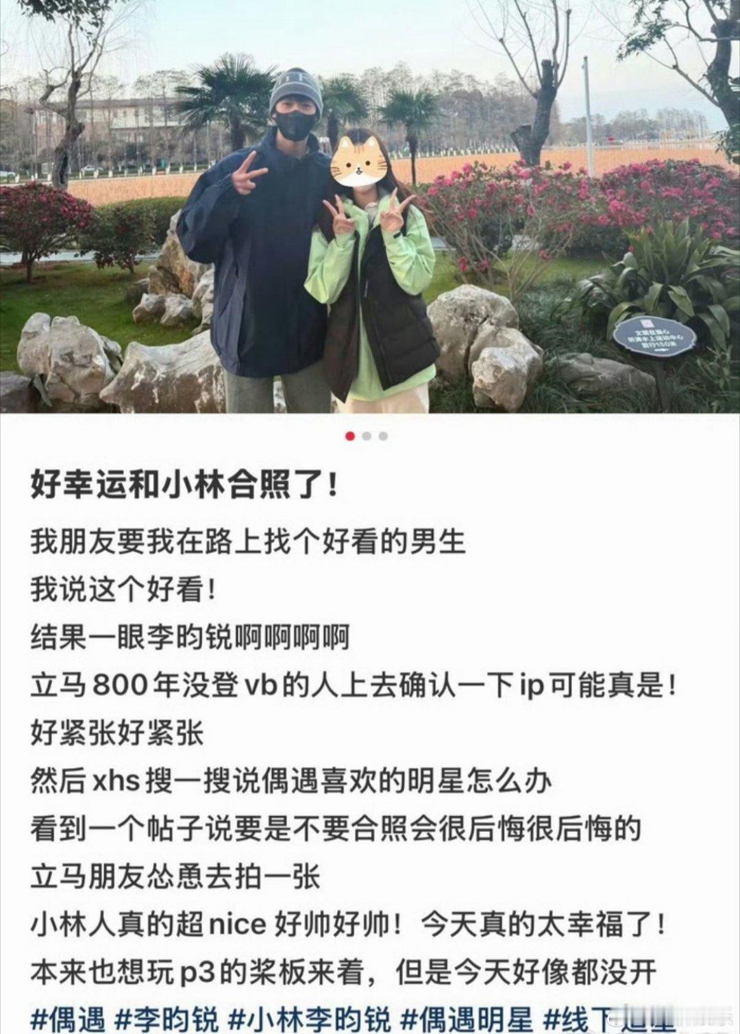 偶遇李昀锐合照 路人偶遇李昀锐真人超温柔,主动配合拍照,颜值状态在线,笑容治愈,真人比镜头里更有亲和力。