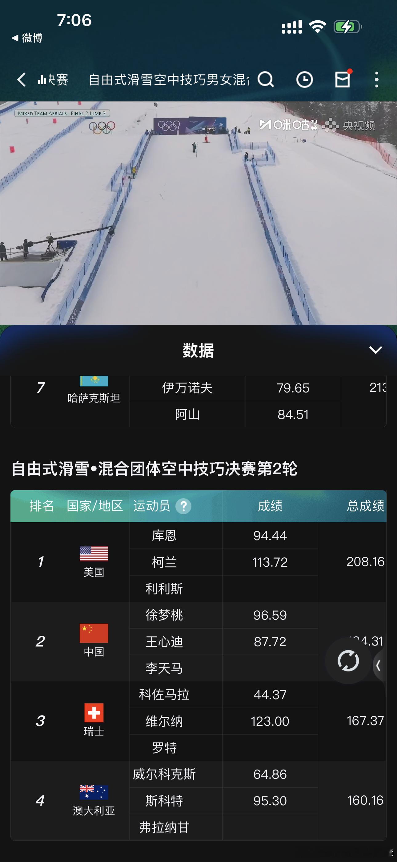 【#谷爱凌第一滑暂断档领先#】2月9日19:30,中国选手谷爱凌和队友向金牌发起