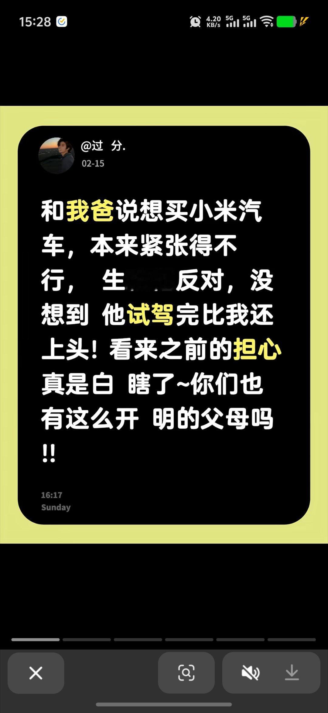 那些被网上假新闻误导的长辈们,一到店里试驾为啥都认可小米汽车好看好开啊。AI提车、共享提车,不如送个车模送两筐鸡蛋吸引消费者去试驾,好车自然有成交,文案再好有啥用。