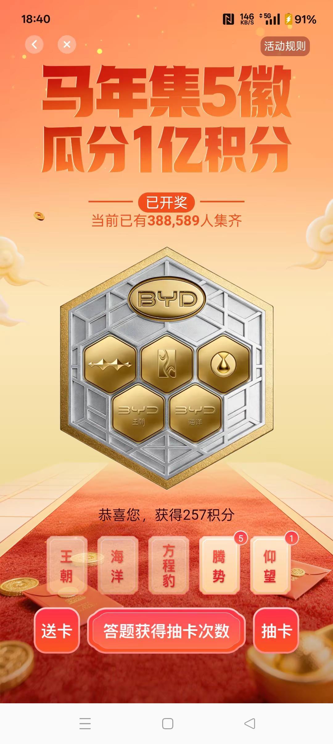 积分太少了。一千多万的车主,分一亿积分,太少了。希望2026年比亚迪新能源汽车销量,国内国外更生一层楼。希望今年比亚迪多点积分,供比亚迪车主分,今年我才分了257个积分,你们呢。比亚迪分积分比亚迪车主新能源汽车@比亚迪汽车