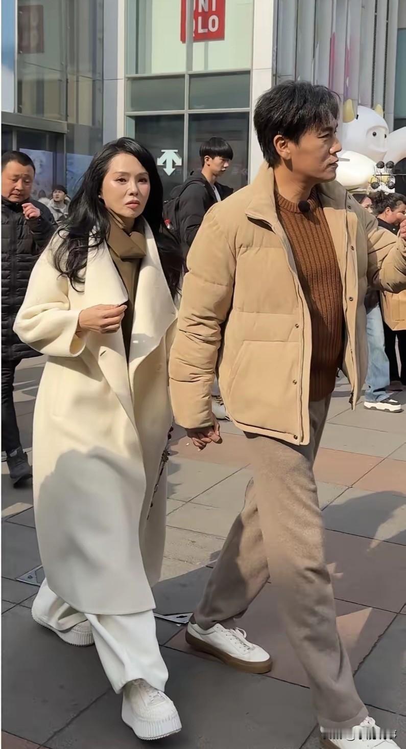 大年初五, 有人在沈阳街头碰到了 伊能静和秦昊夫妻俩。 伊能静一身白,大衣配阔腿裤, 穿得又洋气又暖和,身材保持得特别好。都快六十的人了,脸看着还挺紧致,状态真不是一般人能比的。 秦昊穿件棕色羽绒服,瘦了不少,个子高高的,很精神。 两人手拉手在街上走,老夫老妻还这么甜,一点看不出年龄差。低调又恩爱,秦昊演技还好,路人缘真是没话说,难怪大家都这么喜欢他俩。