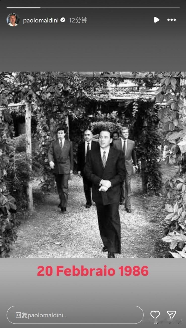 马尔蒂尼!马尔蒂尼社交媒体发布了纪念贝卢斯科尼主席收购米兰四十周年纪念照片,很多