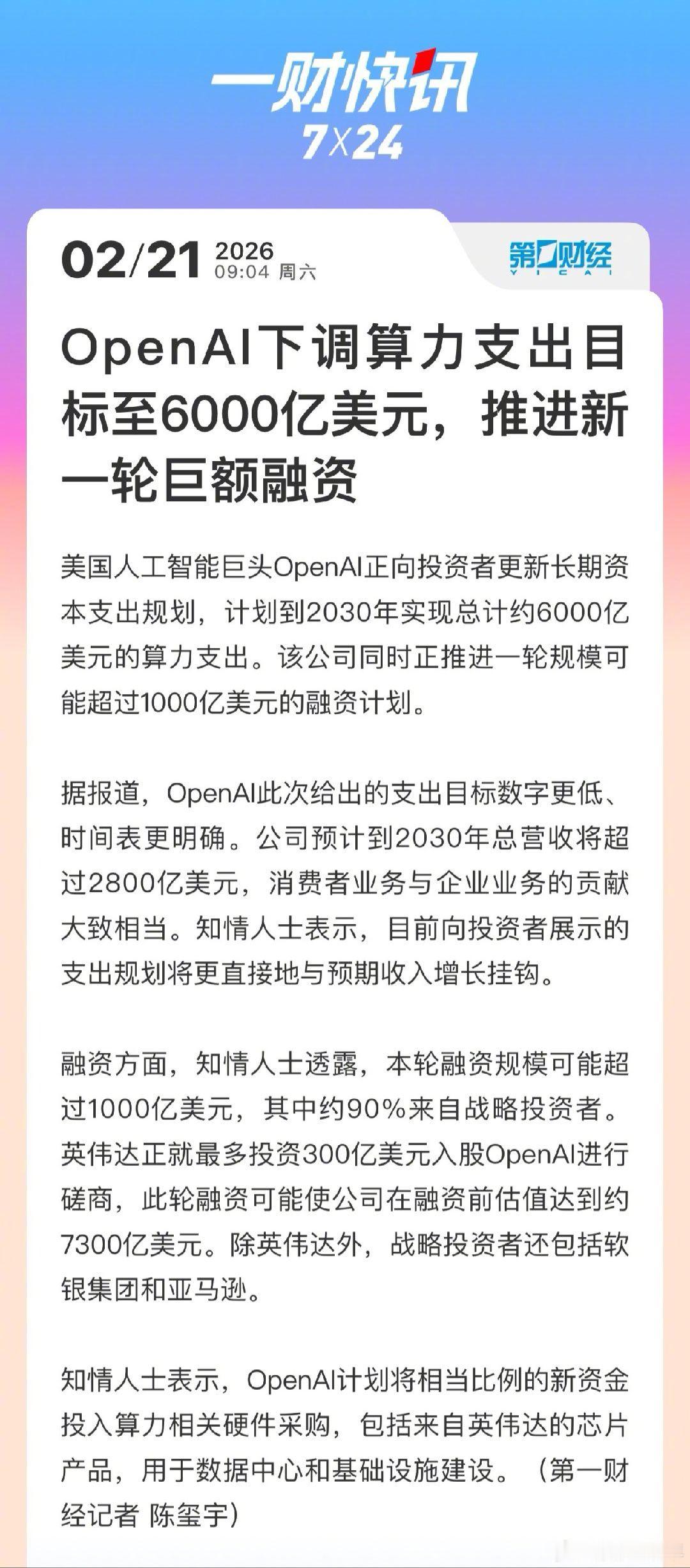 OpenAI下调算力支出目标至6000亿美元 太吓人了吧,动不动就几千亿还是美元💵!!
