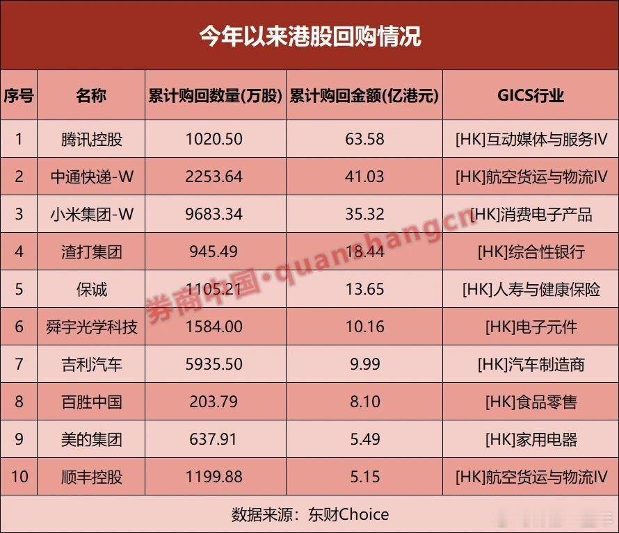 今年以来港股回购情况A股