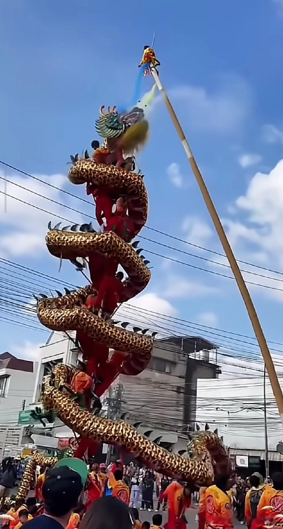 湛江街头舞龙,看得我热血沸腾🔥 今天刷到湛江街头的舞龙视频,我直接看呆了!一条金灿灿的巨龙在人群中盘旋而上,足足叠了好几层人梯,龙头直指云霄,而顶端还有个穿黄衣的少年,在一根长杆上翻飞腾跃,手里的彩带划出一道道亮眼的弧线。 周围的观众里三层外三层,欢呼声、鼓点声震耳欲聋。这种把传统玩到极致的场面,真的太震撼了!没有花里胡哨的特效,全是实打实的功夫和默契,每一个动作都透着一股不服输的劲儿。 这才是我们中国人的年味啊!不是商场里的促销,不是手机里的祝福,而是这种刻在骨子里的热闹和传承。看着巨龙在街头舞动,感觉整个人都被点燃了,这才是过年该有的样子! 你觉得这种传统民俗,是不是比任何网红打卡都更有意义?