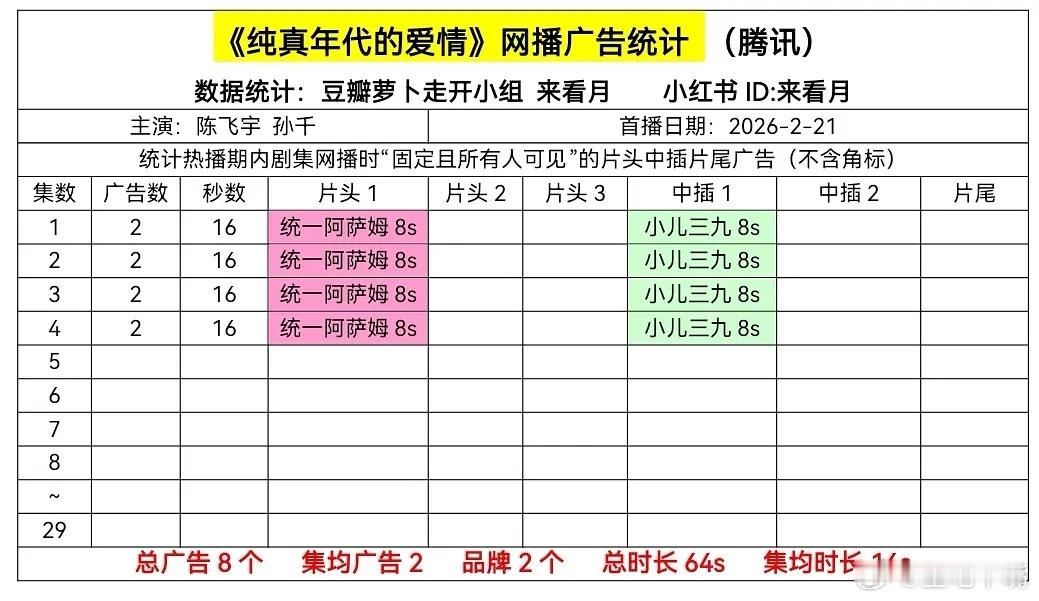内娱第一个被兔塑的男主陈飞宇孙千《纯真年代的爱情》首日网播广告数据:开局2广!