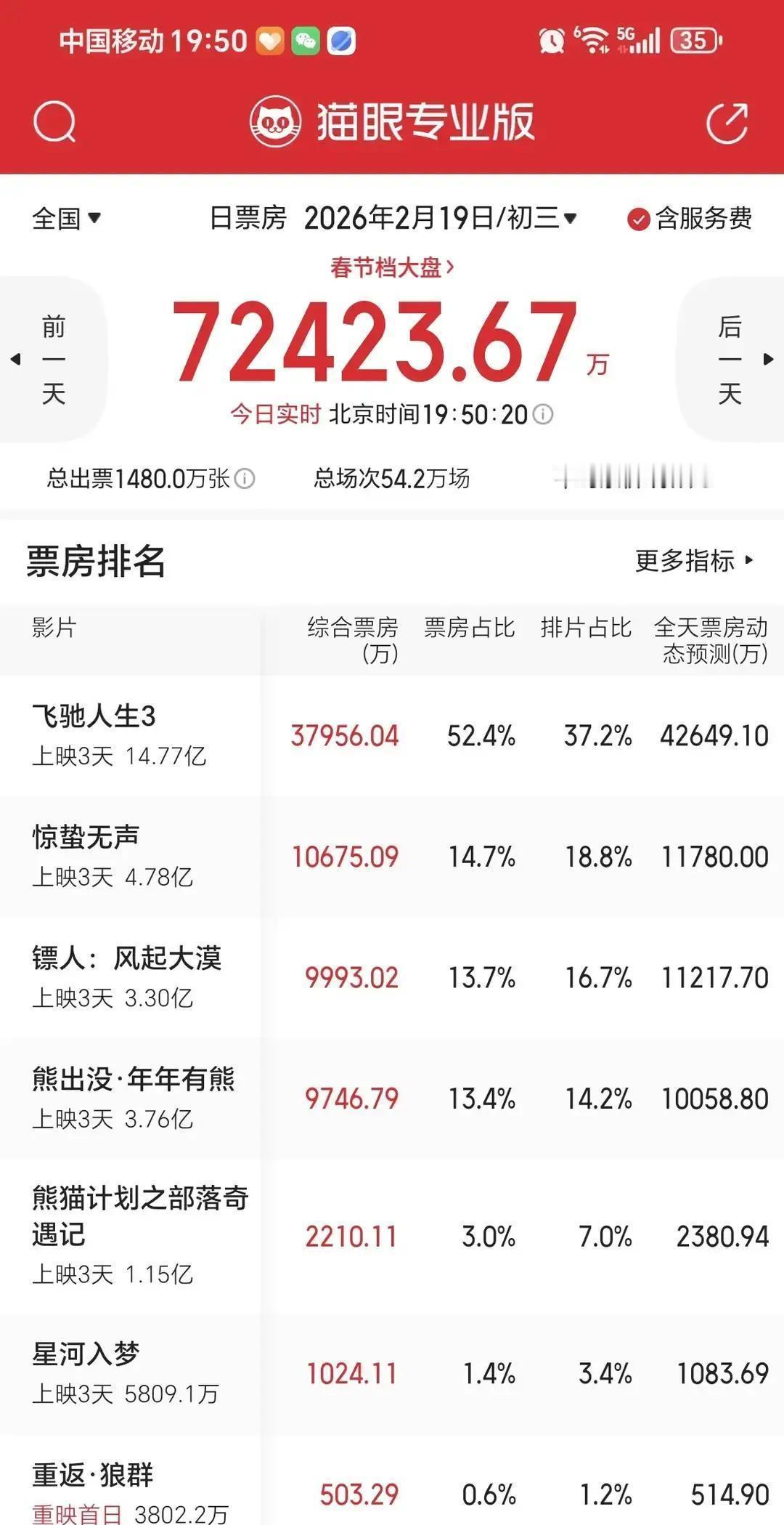 大年初七,别人票房都在跌,它却在暴涨。 《镖人》单日票房逆势狂飙,影院经理连夜撕掉排片表给它腾位置。 动画圈的朋友看完疯了,凌晨三点还在群里发刀截图。 导演说这是给成年人的武侠梦。 但真正让它杀出重围的,是第一批观众走出影厅时,眼睛发亮地跟朋友说“这钱花得值”。 春节档到最后,比的不是谁开场嗓门大。 是贾玲用《热辣滚烫》告诉你坚持的重量,是《飞驰人生2》让你笑着哭完,是《熊出没》十年如一日地守住合家欢。 而《镖人》用逆袭证明了一件事:好内容自己会长腿狂奔。 这届观众,眼睛雪亮。 别急着划走,你站队的那部,赢了吗?