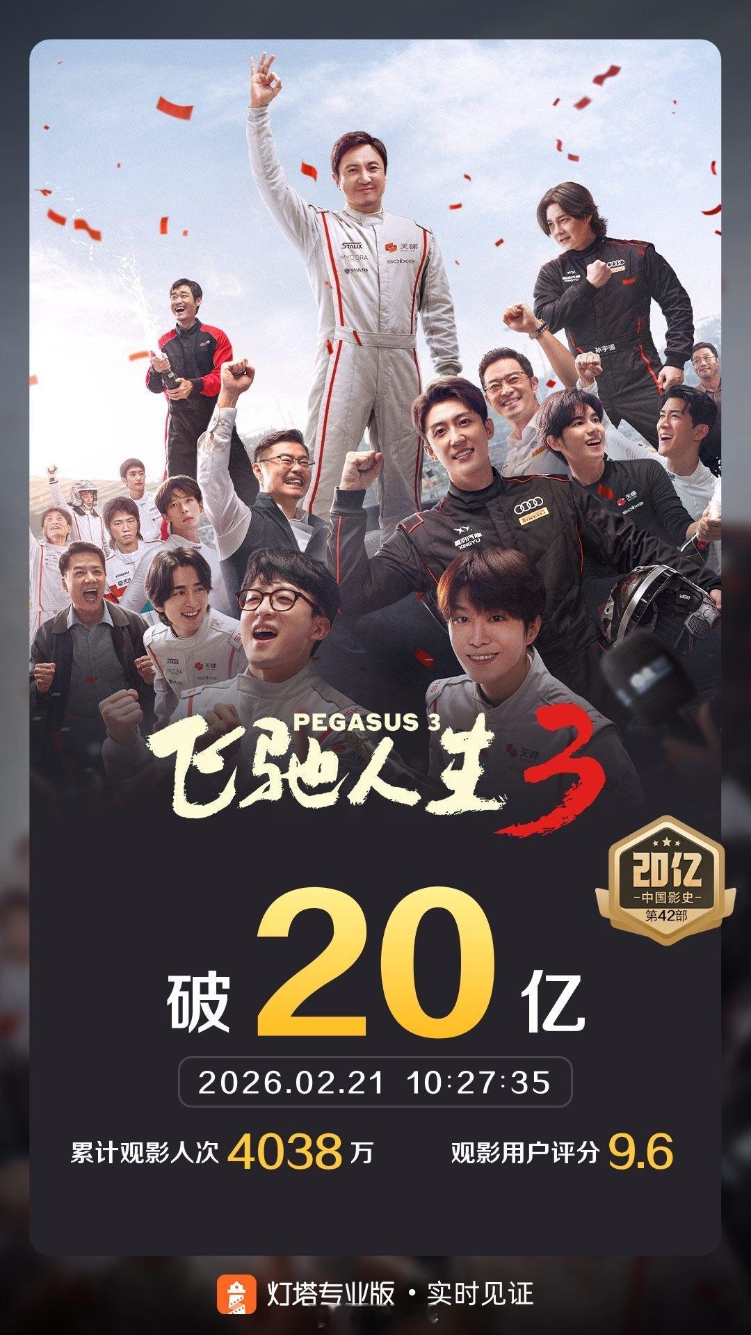 飞驰人生3五天破20亿太牛啦!《飞驰人生3》5天票房破20亿,是中国影史第42部20亿电影,里程碑刷新了。这是赛车类型电影的胜利,也再次证明了沈腾扛票房能力,只要是他领衔主演的电影,卖座就没有差的。改天我要二刷《飞驰人生3》🏎️田宇院线播报