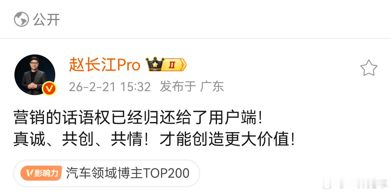 长江总:“营销的话语权已经归还给了用户端!”。此外,他主页的图片也已经换成了智界V9。感觉来了智界之后,整个人一下子都精神了呀