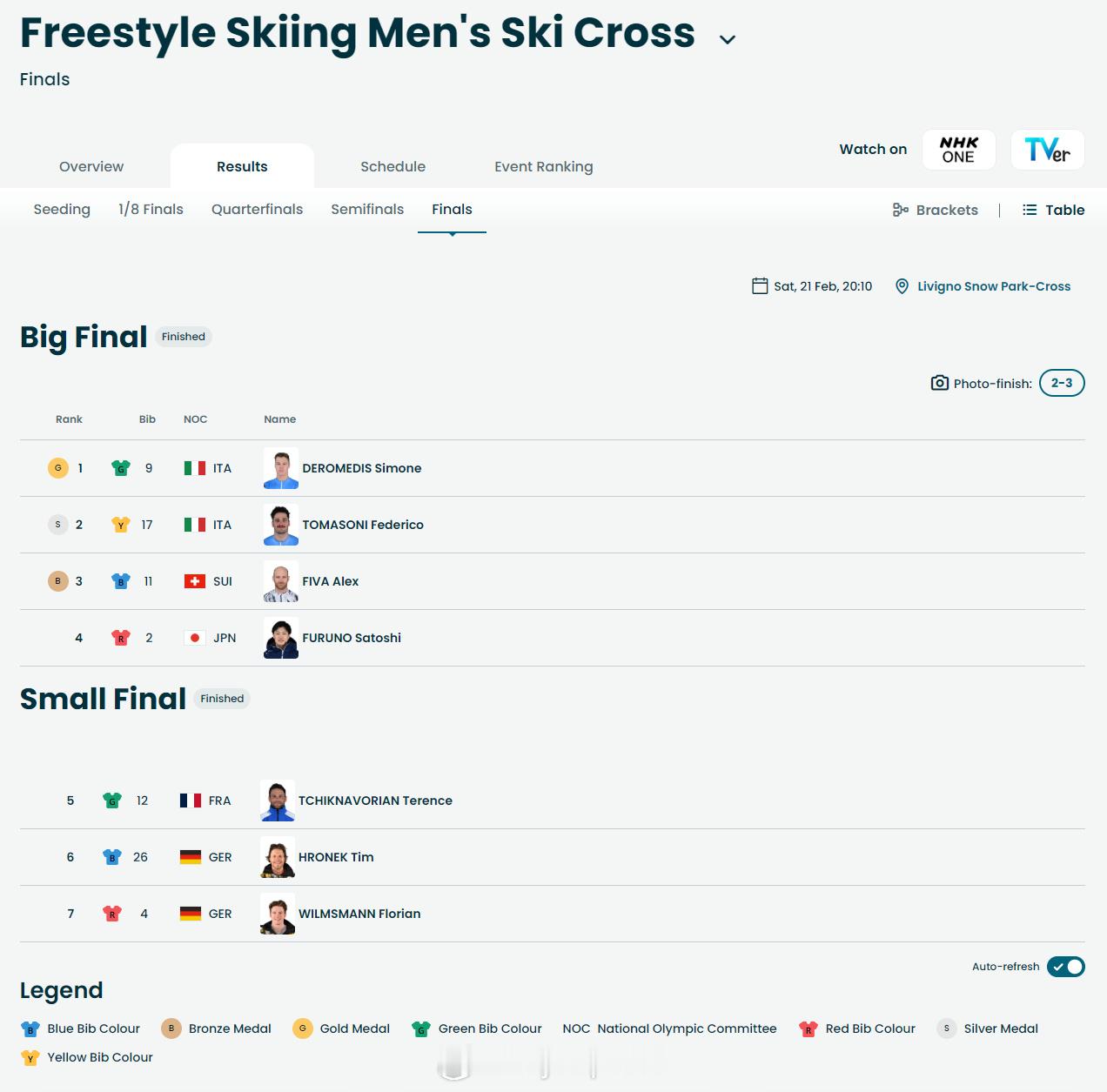 【冬奥自由式滑雪男子障碍追逐意大利包揽金银牌】 冬奥会 2月21日,冬奥会自由式滑雪男子障碍追逐比赛结束,意大利队德罗梅迪思和托马索尼包揽金银牌,瑞士菲瓦获得铜牌。