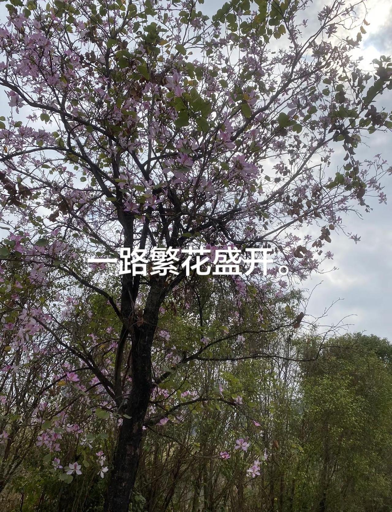 补发初二的花路——回娘家的路上,粉色白色紫荆花一路相随,棵棵爆满,树树繁花,妥妥