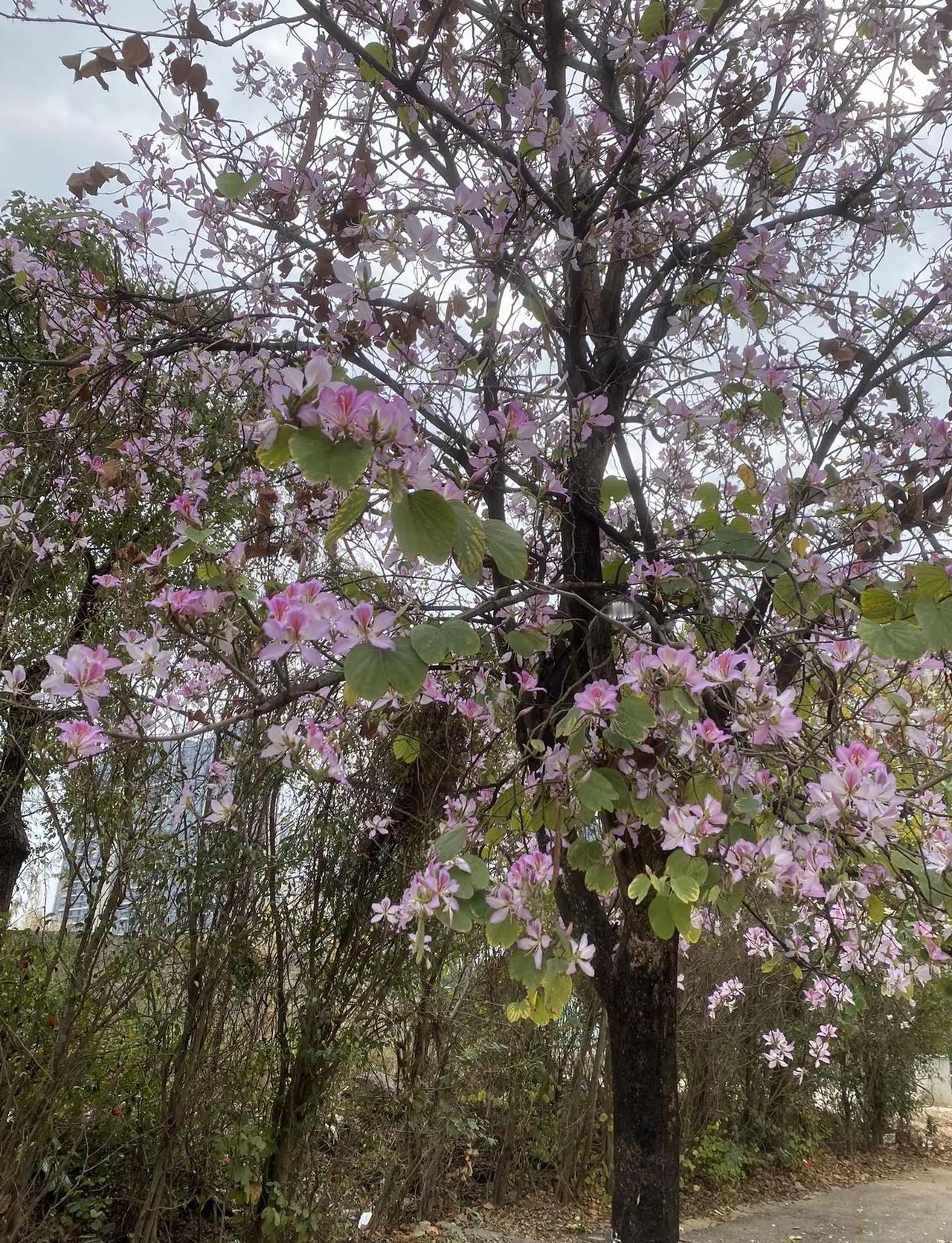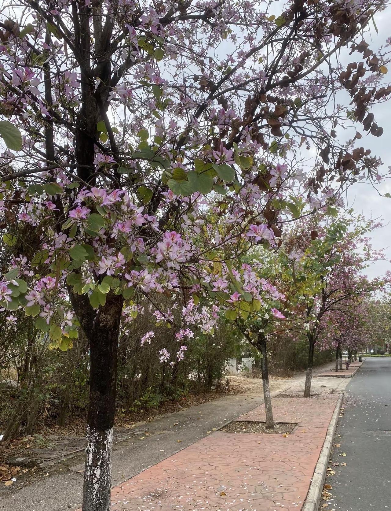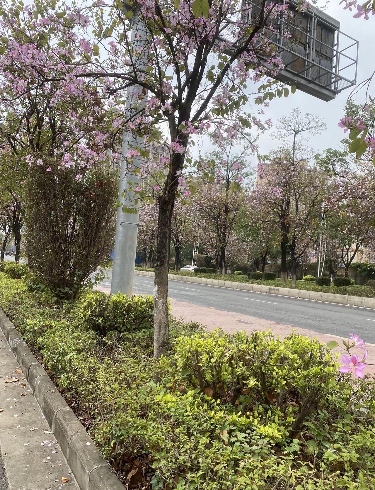 花开富贵好运来,美丽的紫荆花开满了大街。路拍春天的花🌸花开爱了祝刷到视