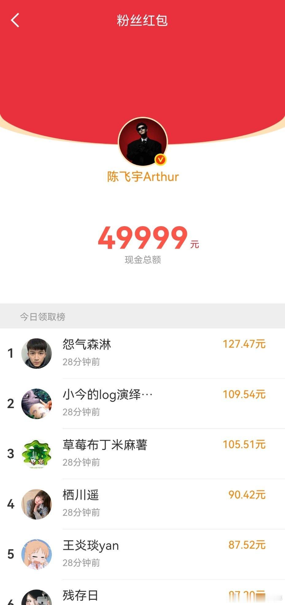 阿瑟富哥行为+1陈飞宇发了49999红包春节刷到宝了