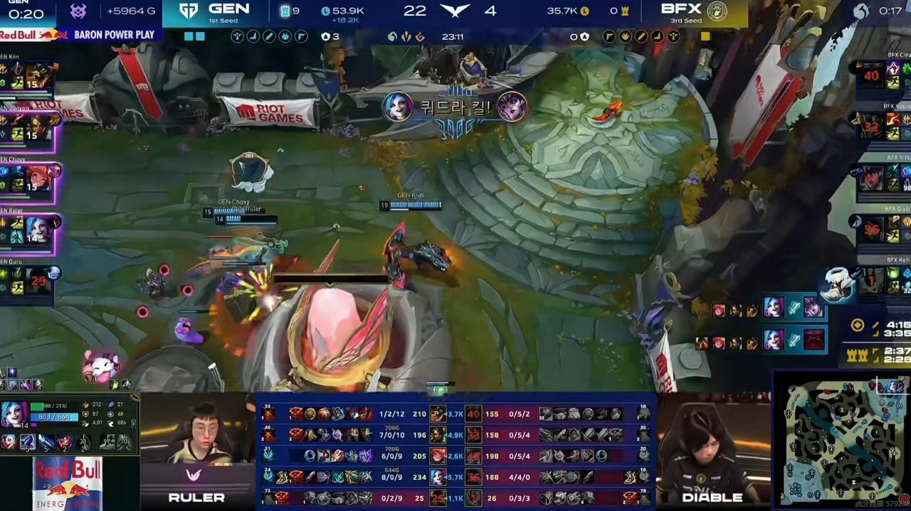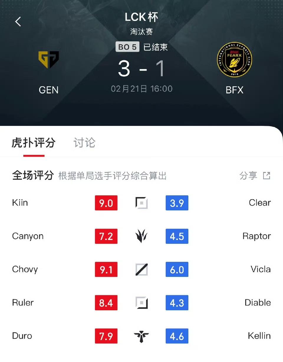 最后GEN3-1战胜BFX轻松晋级lck杯决赛!每次看GEN看chovy的比赛在打联赛的时候真是强,是属于那种各方面毫无死角的强!但每次到世界赛又会整点幺蛾子。 话说回来虽然多数观众都不太信任世界赛的chovy,但超威和他的队伍确实也是都承认的强!