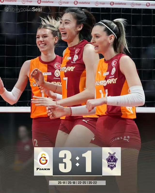 土超加拉塔萨雷3比1取胜泽仁体育,25比14、25比18、22比25、25比22,王媛媛10扣5中2拦拿到7分,邦加尔次和卡鲁塔苏的配合还是挺赏心悦目的,而泽仁这边头号得分手乌泽拉茨状态一般!继续给王媛媛加油中国女排王媛媛中国女排