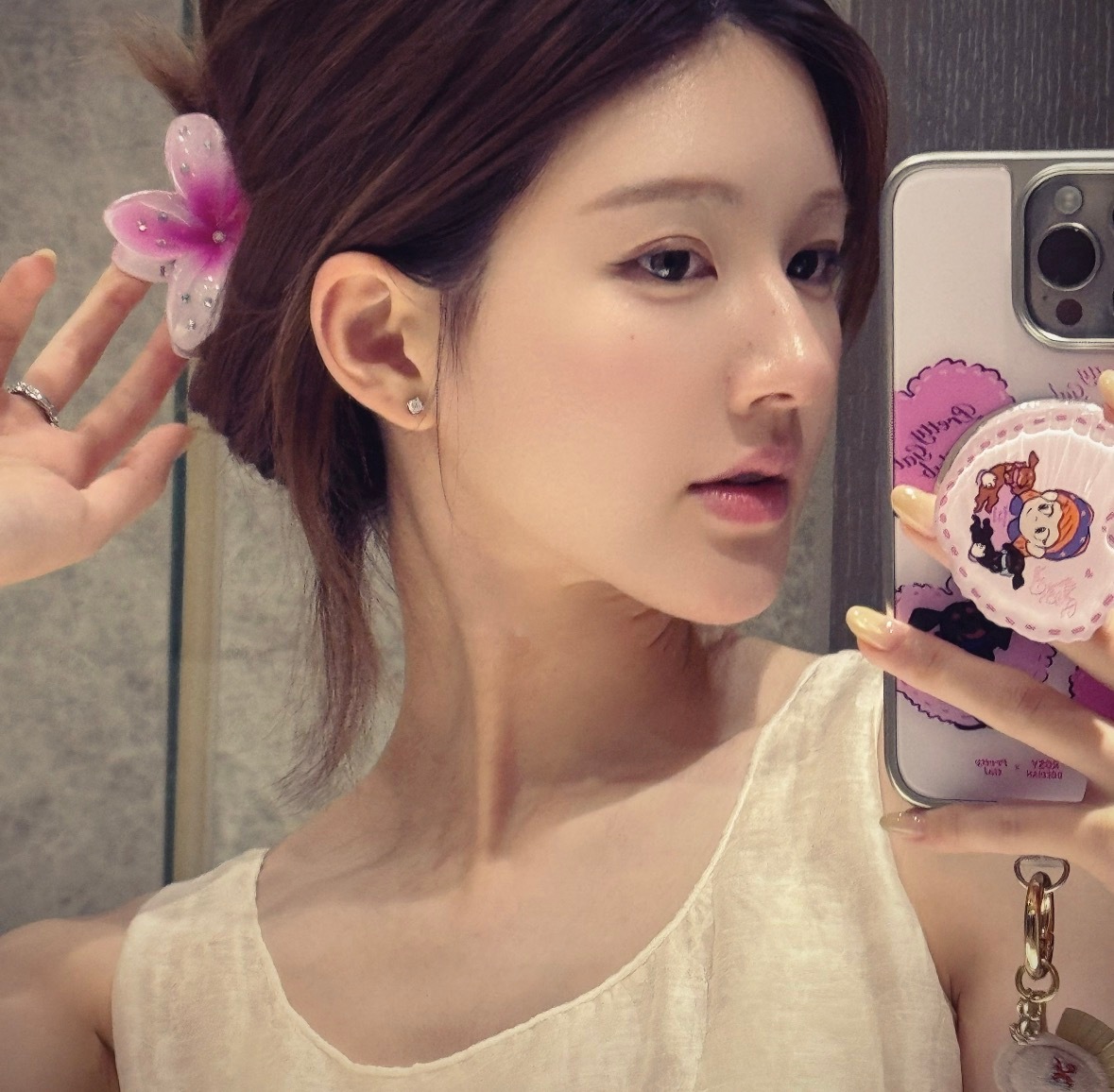 张天爱跟素人合影,胯真的好宽,大宅院似的